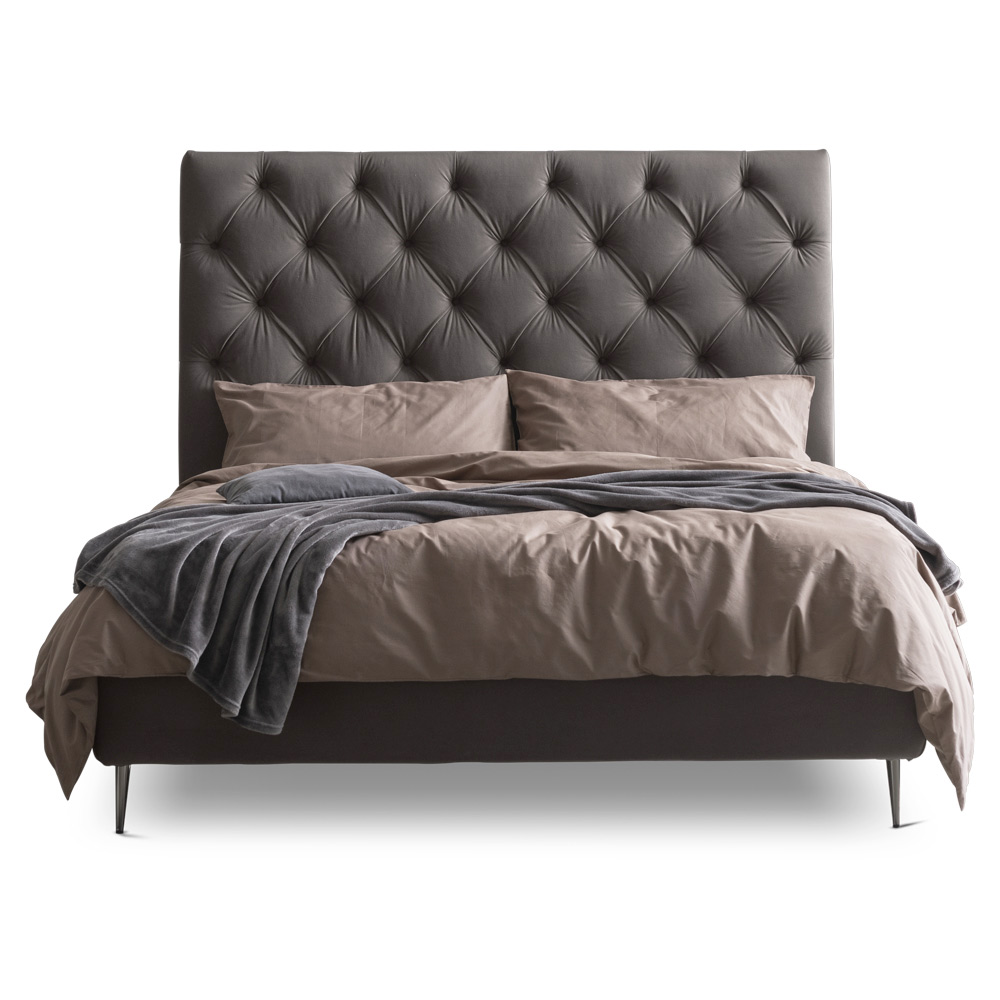 opbergkast, metalen poten in mokka-look (hoogte 15 cm) en gekenmerkt door een kostbare gewatteerde afwerking in het brandwerende hoofdbord en de aanzienlijke hoogte, waardoor het bed uniek en elegant is.