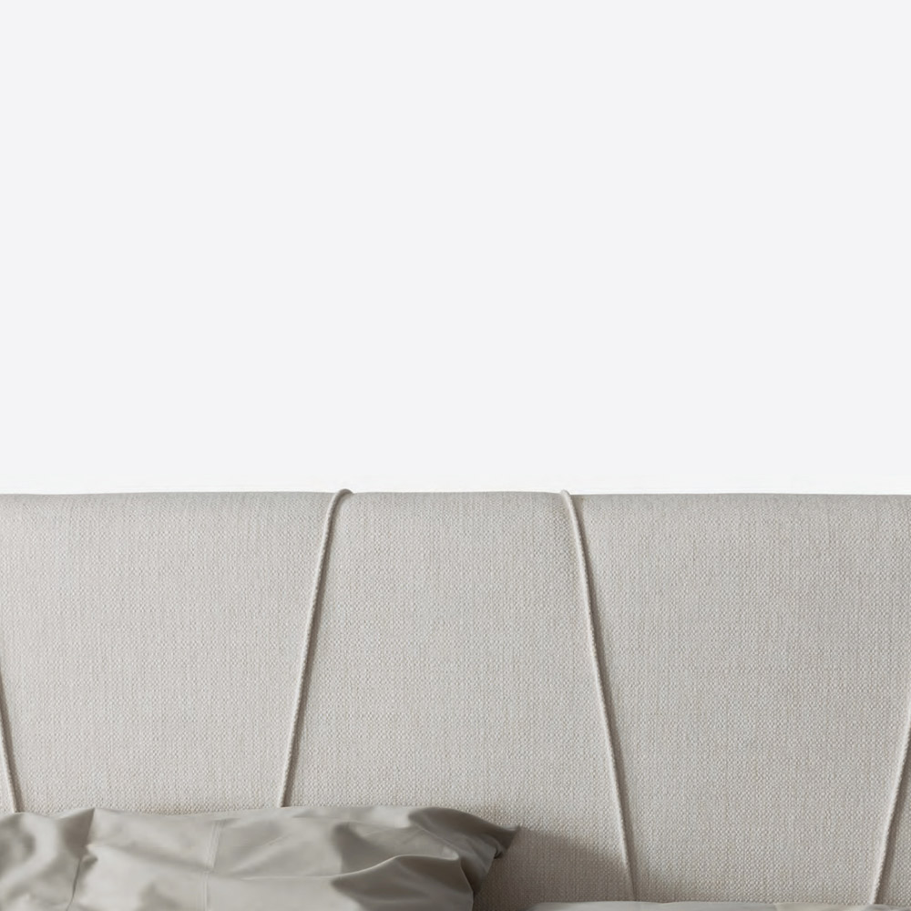 brandwerende stof met strakke lijnen, uitgevoerd met schuine koordprofielen die het bed karakteriseren en een origineel esthetisch effect geven.