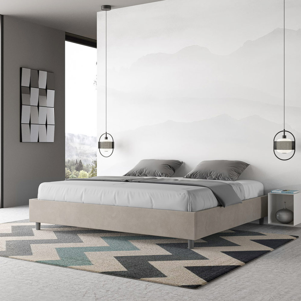 Super kingsize bed 200x200 cm, gewatteerd met melamine panelen en bekleed met microvezel , volledig gemaakt in Italië. Dit super kingsize bed valt op door zijn strakke, minimalistische design . De ingetogen esthetiek en veelzijdigheid maken het gemakkelijk om het in elke omgeving te integreren. Een van de kenmerkende eigenschappen is de afwezigheid van een traditioneel hoofdeinde , waardoor het ideaal is voor plaatsing in unieke ruimtes, zoals onder een raam, op zolder of tegen een decoratieve muur, zonder het uitzicht te belemmeren of het gewenste effect te bereiken.
