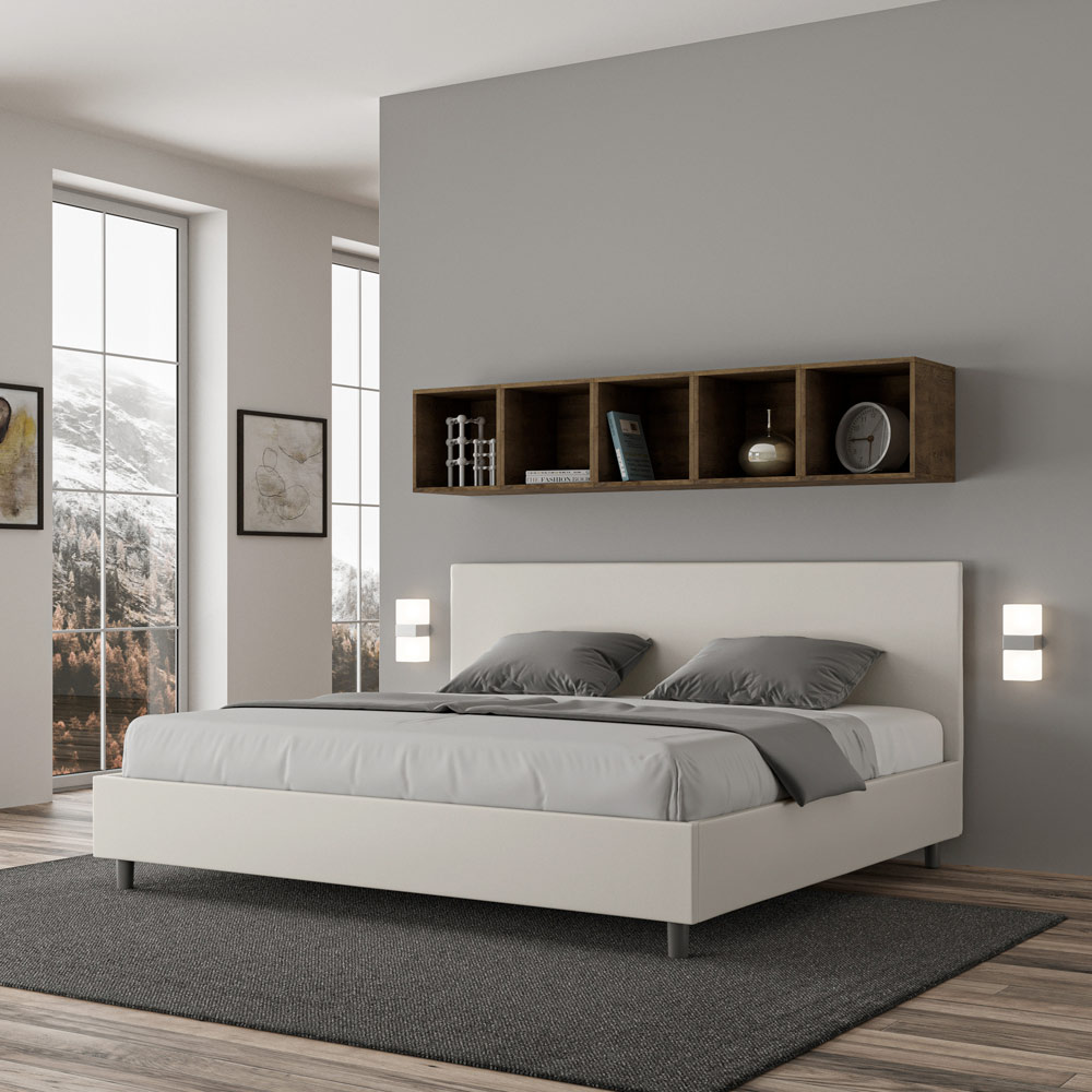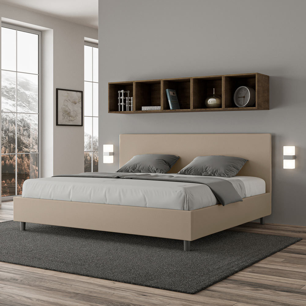 Super kingsize bed 200x200 cm, gewatteerd met melamine panelen en bekleed met kunstleer , volledig Made in Italy. Dit extra grote tweepersoonsbed heeft een gestoffeerd bedframe en is een toonbeeld van ingetogen maar elegante stijl. Dankzij het hoofdbord van kunstleer past dit bed naadloos in elke ruimte en voegt het een kenmerkende, Italiaanse touch van klasse en luxe toe. Onderhoud is eenvoudig: afvegen met een microvezeldoek is voldoende om de schoonheid ervan te behouden.