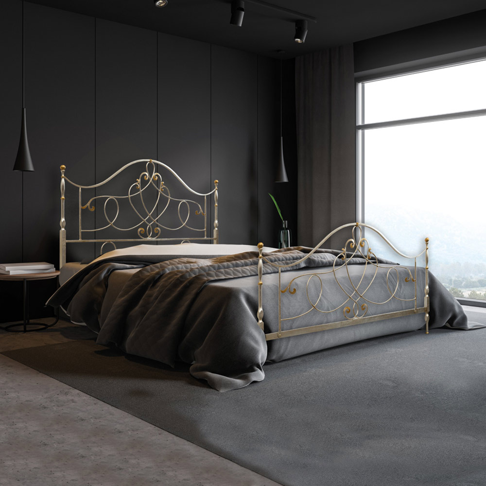 Tweepersoonsbed met ijzeren hoofdeinde Made in Italy