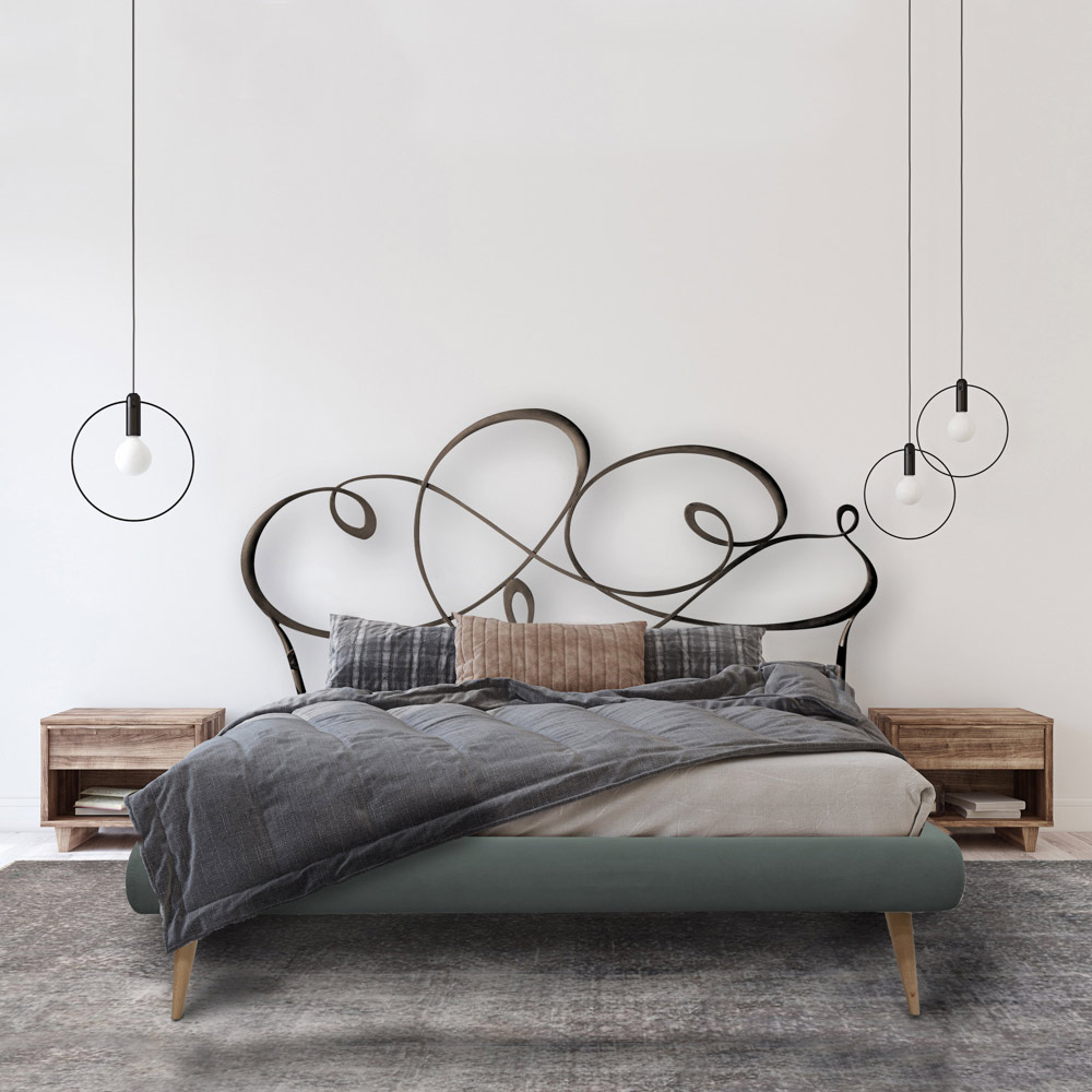 Tweepersoonsbed met ijzeren hoofdeinde Made in Italy