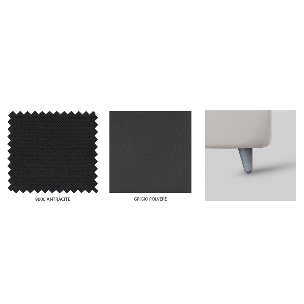 bedekt met antracietkleurige stof met grijze polypropyleen poten.