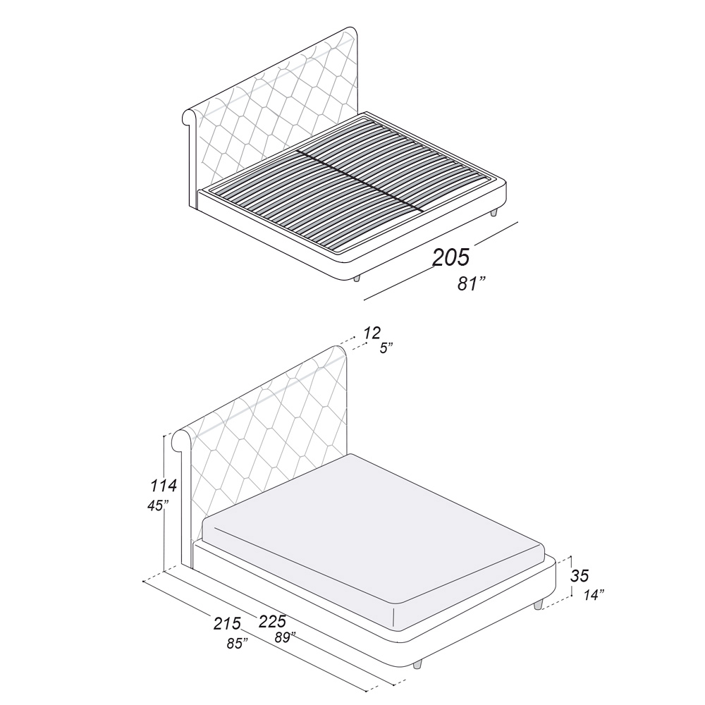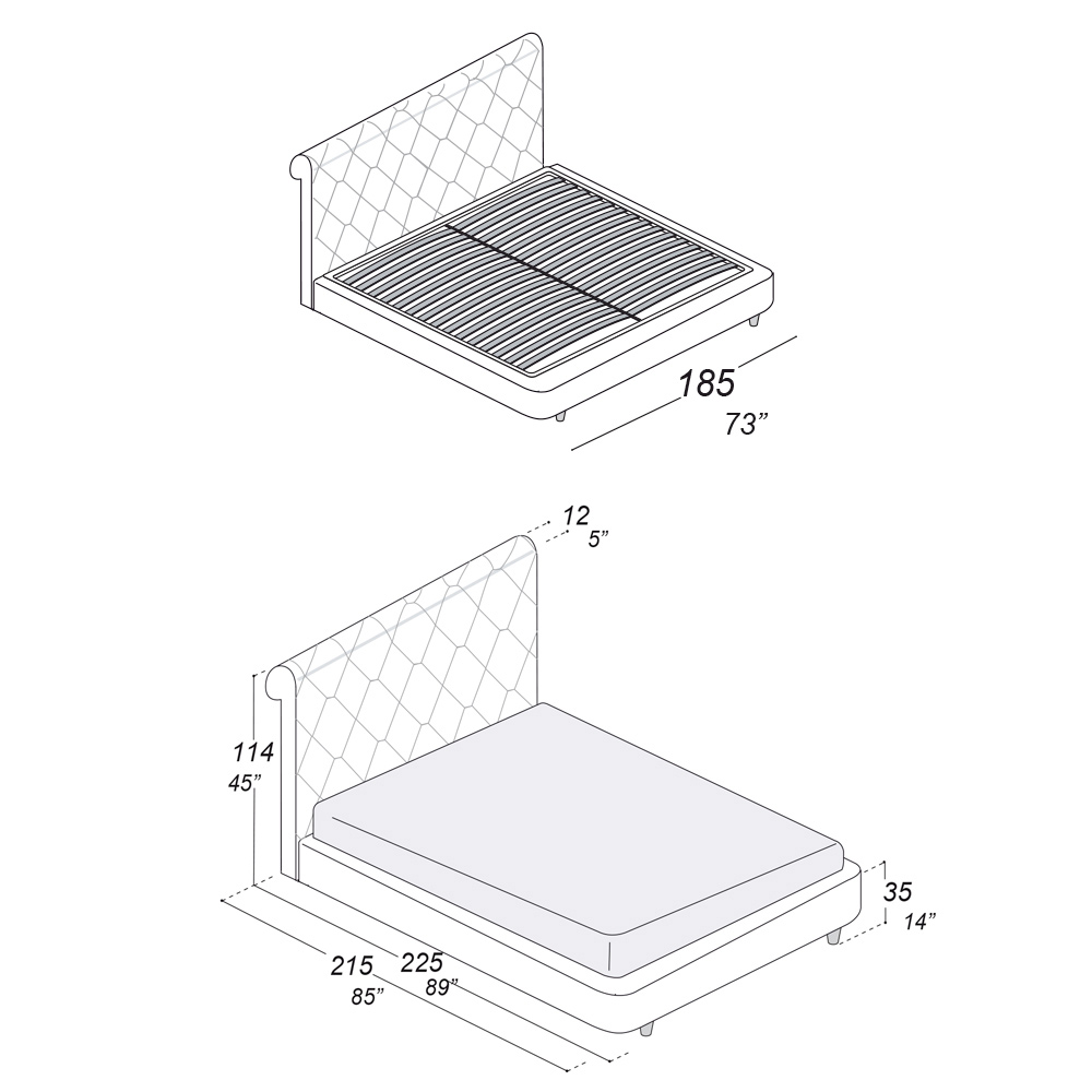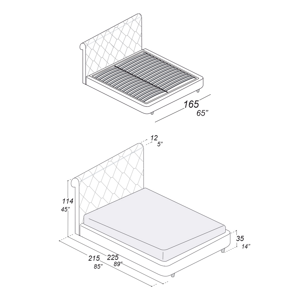 NB: andere afwerkingen zijn beschikbaar. De matras is niet inbegrepen. De versie met container is beschikbaar.