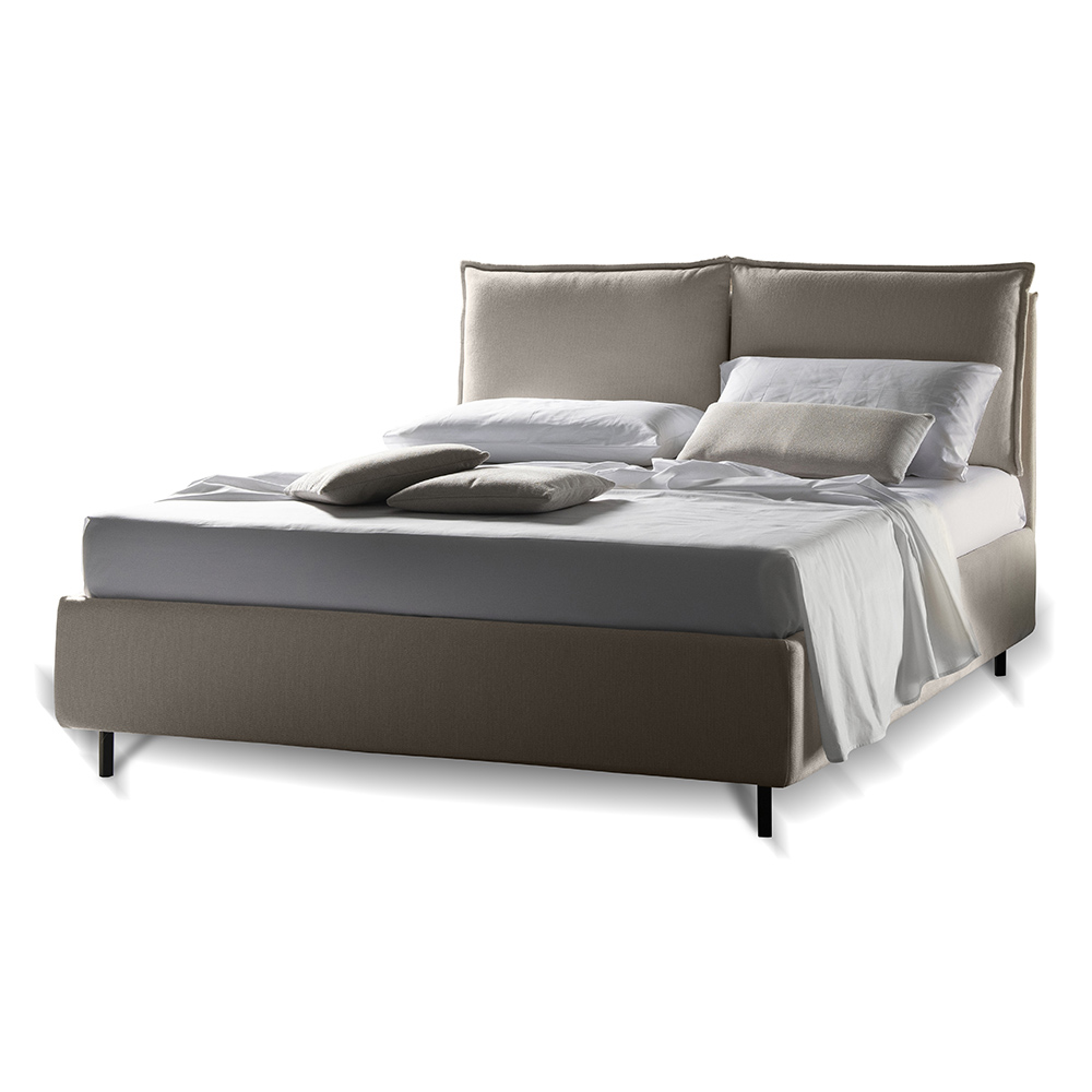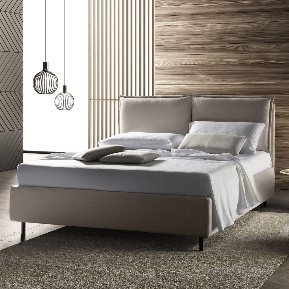 eigentijds idee van comfort dat voortkomt uit de wens om een meubeloplossing te creëren die even functioneel als elegant en modern is. De eenvoud van het bedframe en de metalen poten samen met de originaliteit van het hoofdeinde geven de esthetiek van het product een
