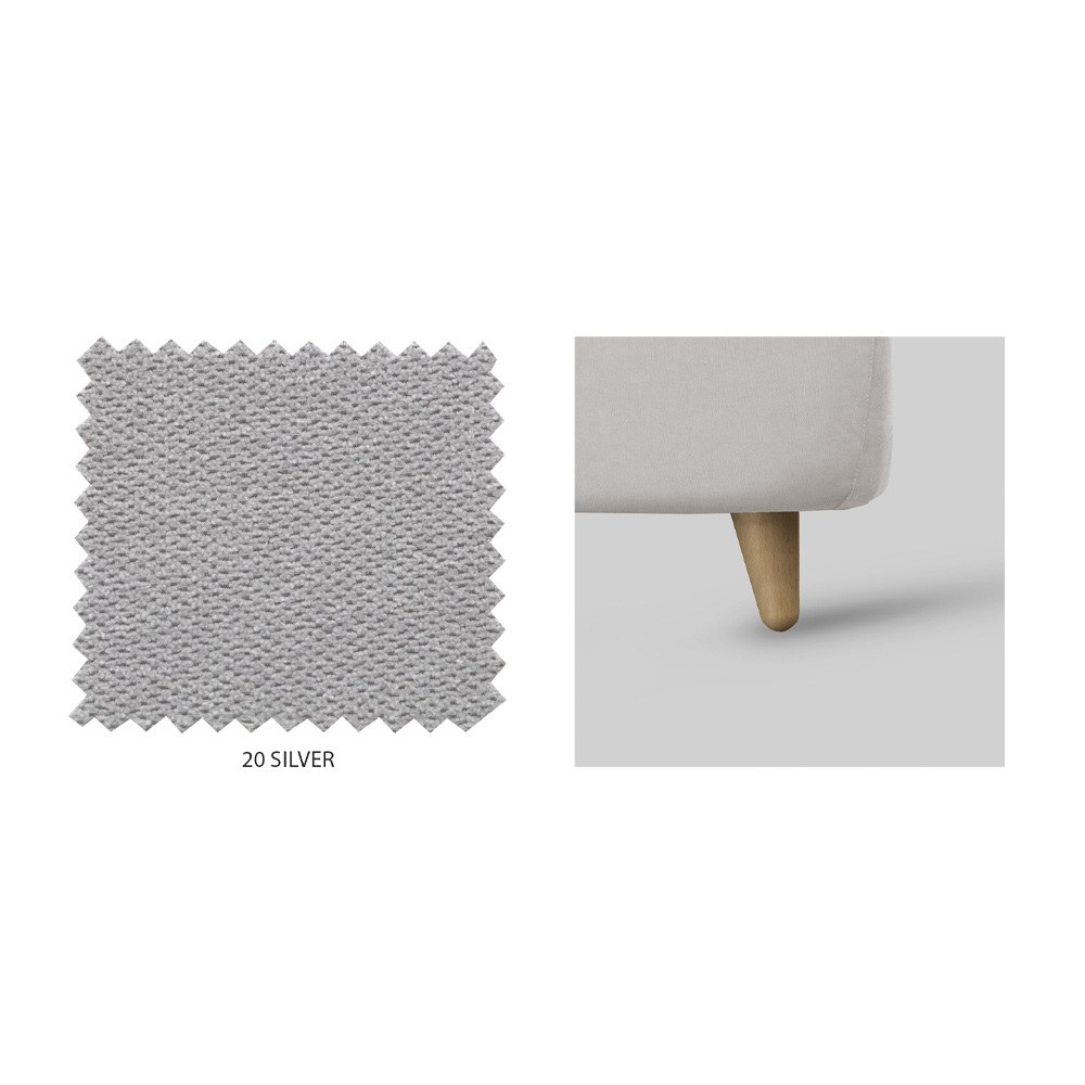 - zilveren stof met natuurlijke houten voeten