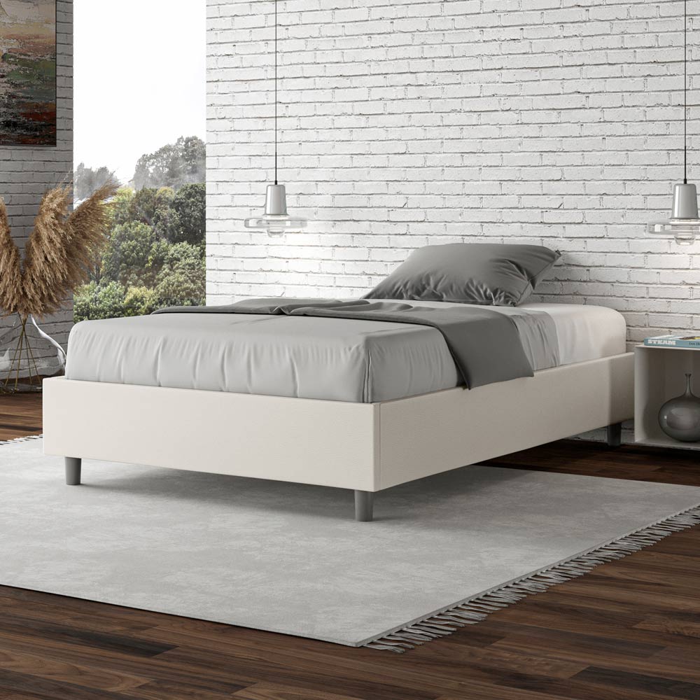 Queensize bed, 120x200 cm, gewatteerd en bekleed met kunstleer, gemaakt in Italië.