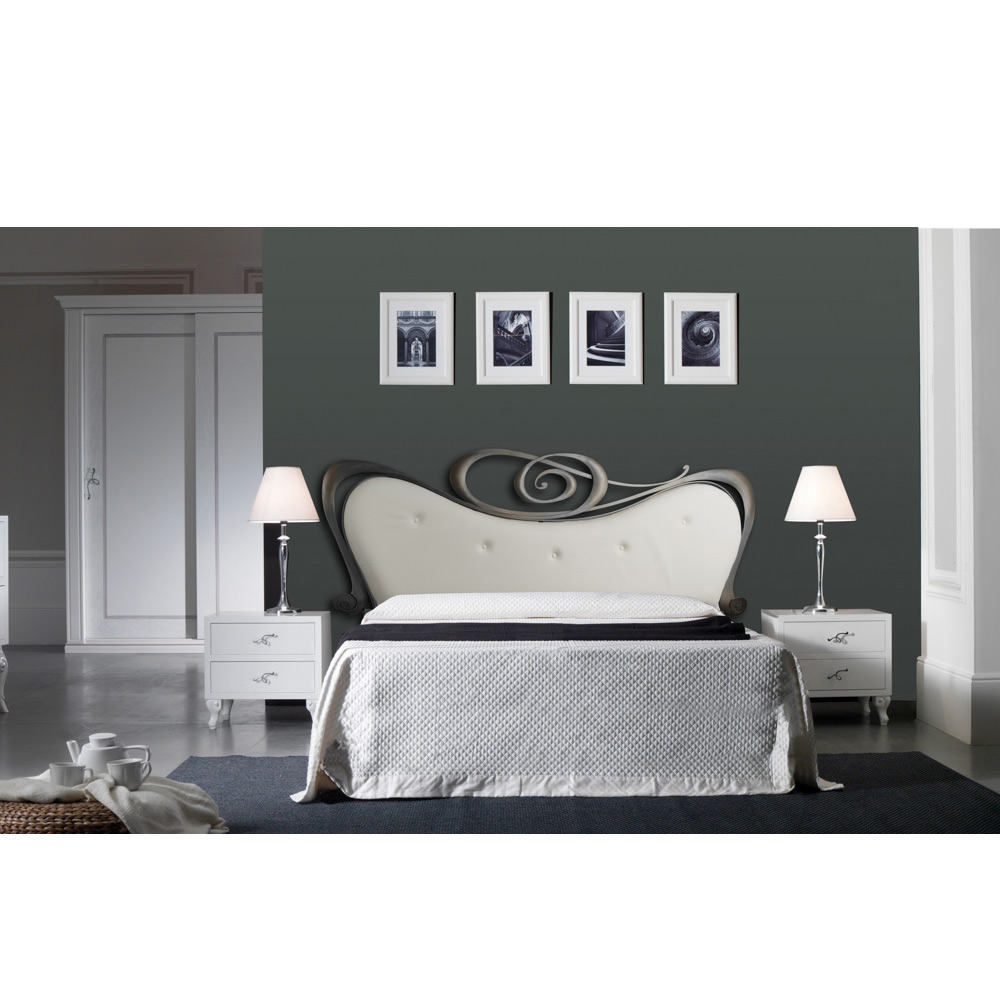 Tweepersoonsbed met ijzeren hoofdeinde en 2 nachtkastjes Made in Italy