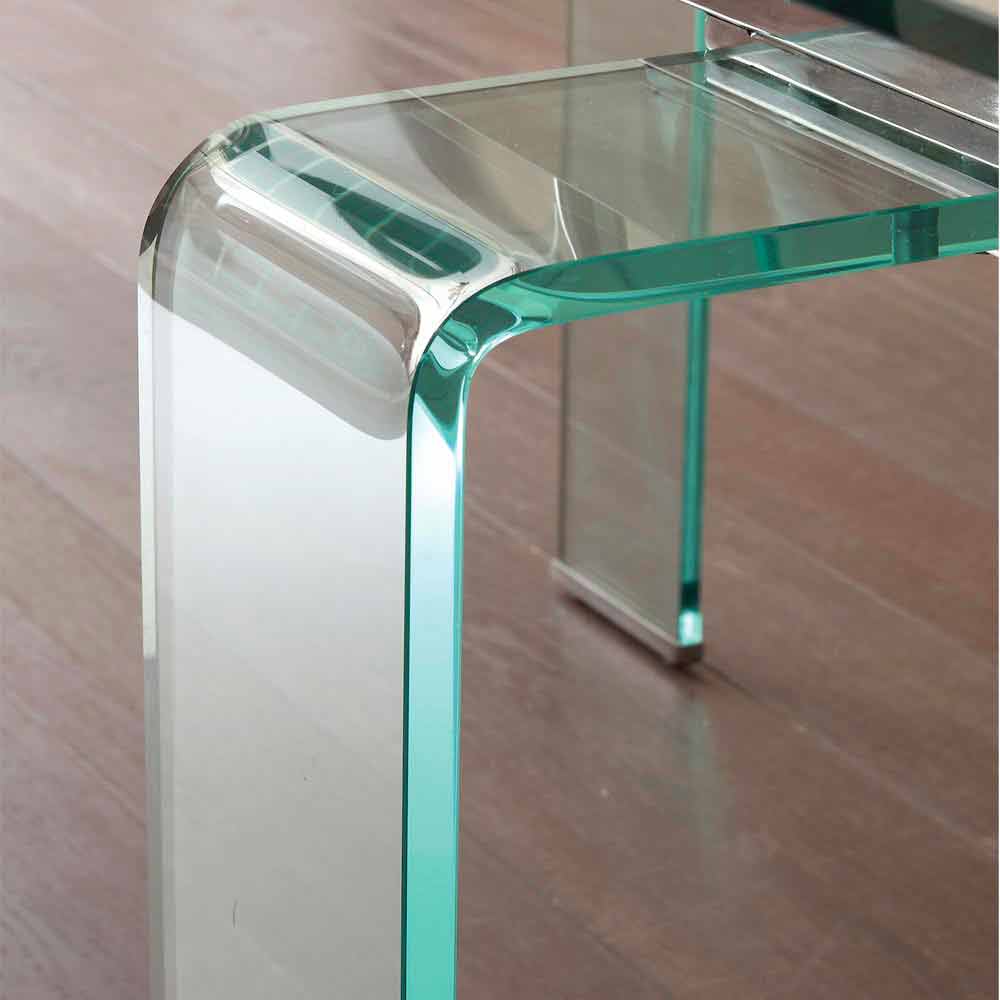 De Heer van het tafelblad is gemaakt van transparant gehard glas (9 mm dikke vloer, poten 14 mm), wordt de structuur van verchroomd metaal.