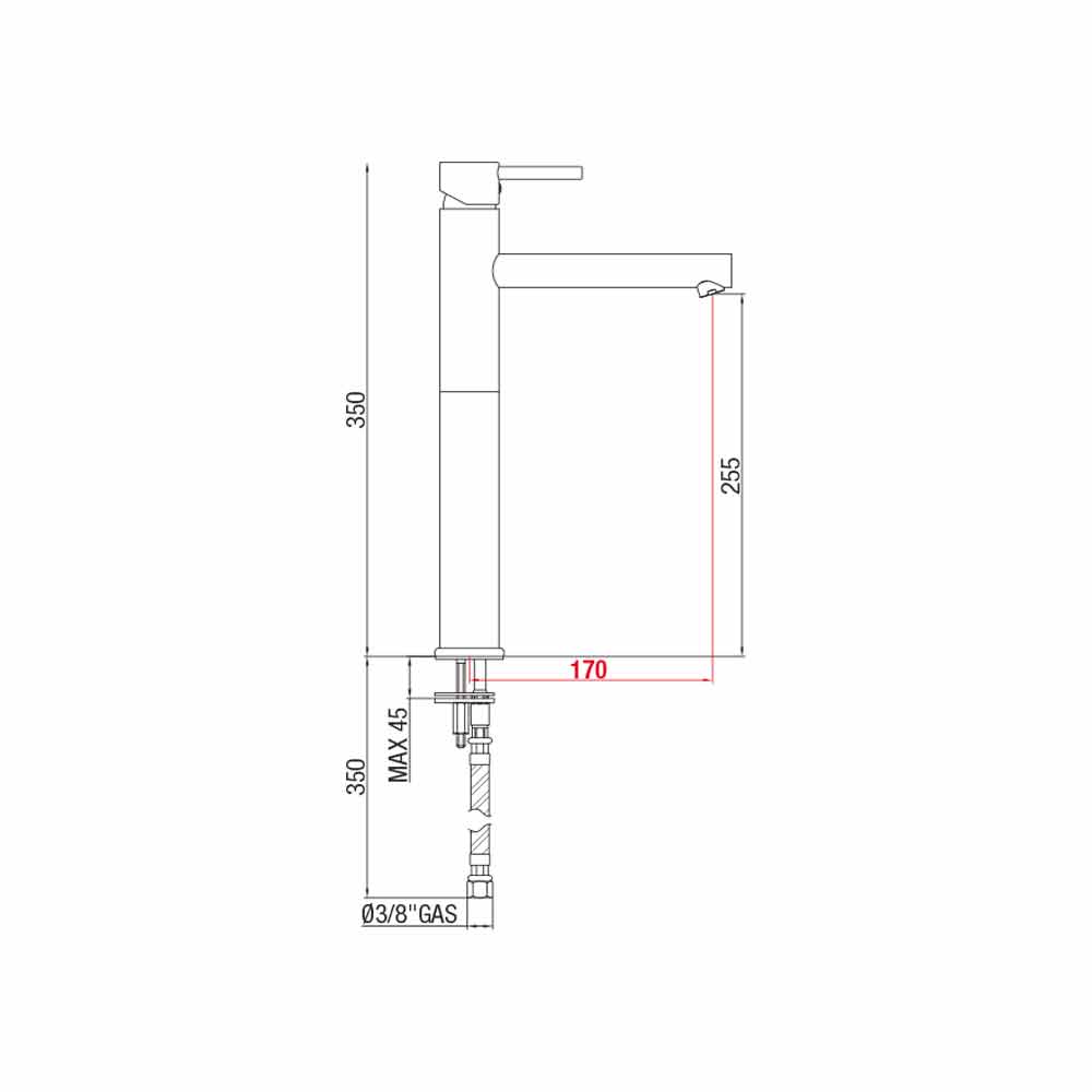 Verlengde kraan voor wastafel