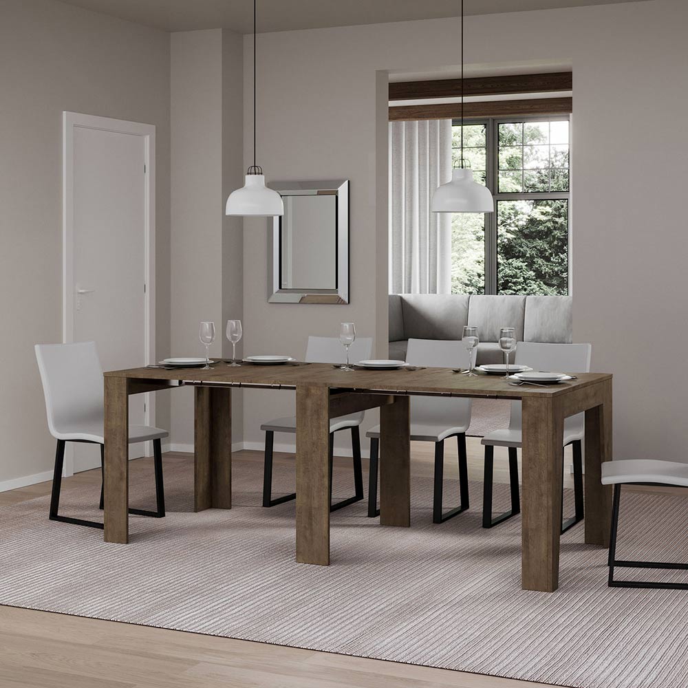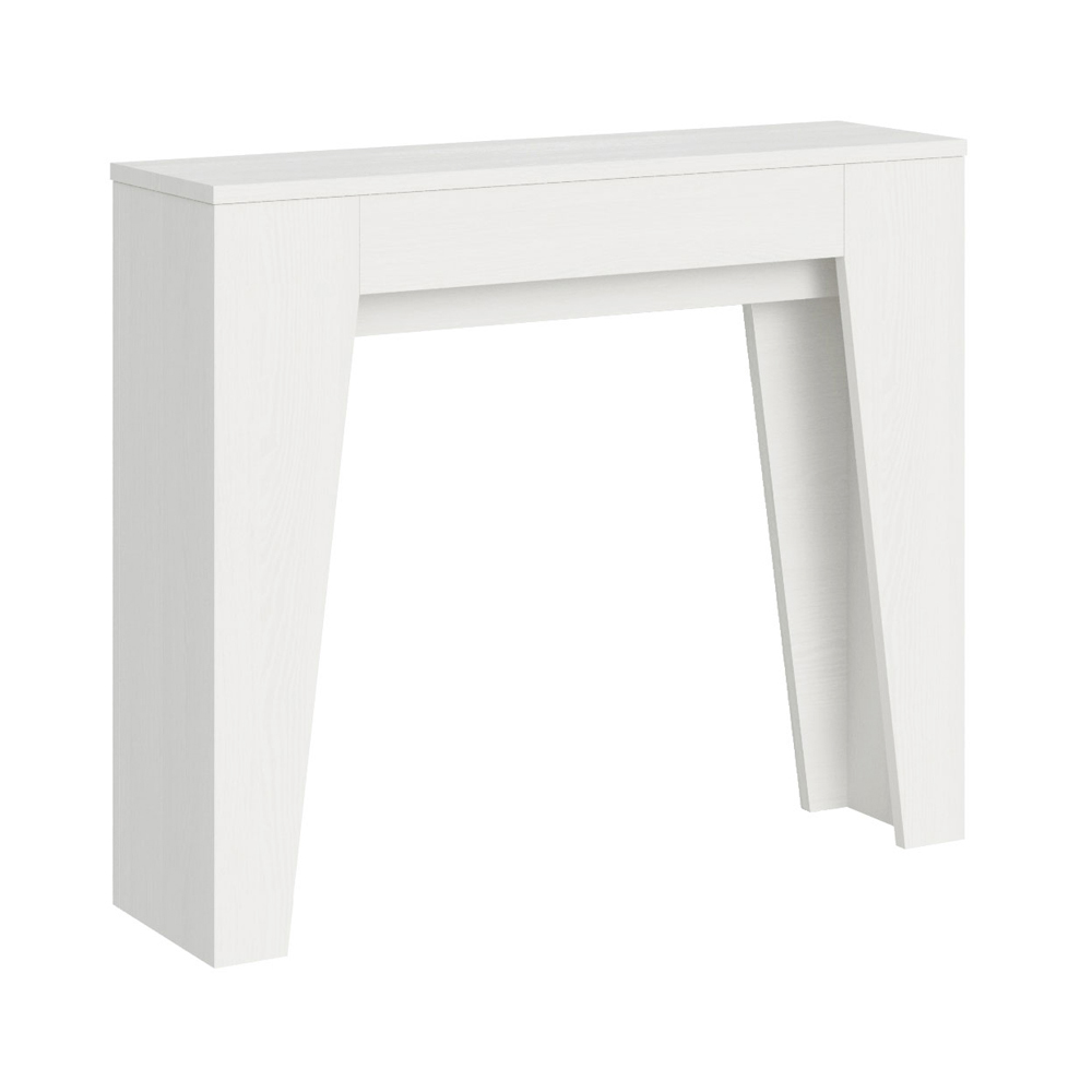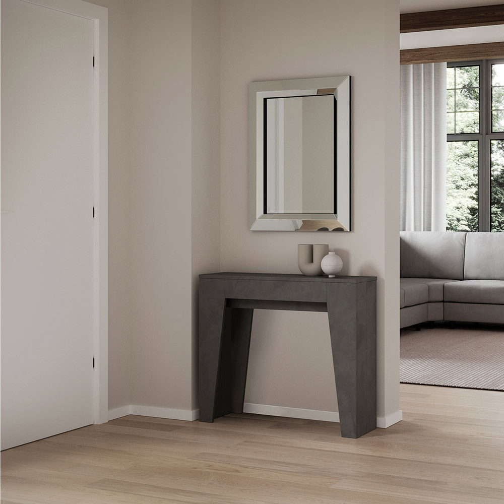 Deze uitschuifbare consoletafel è het toppunt van functioneel en minimalistisch design. De strakke vorm en strakke lijnen maken het een veelzijdig meubelstuk, ideaal voor elke ruimte, van de entree tot de woonkamer, en biedt een beeld van ruimte en orde. De consoletafel is gemakkelijk uit te breiden en transformeert van een discreet meubelstuk tot een praktische eettafel, perfect om vrienden en familie te ontvangen bij speciale gelegenheden. Deze veelzijdigheid maakt het een ideale keuze voor degenen die in kleine ruimtes wonen maar niet willen inleveren op functionaliteit en stijl.