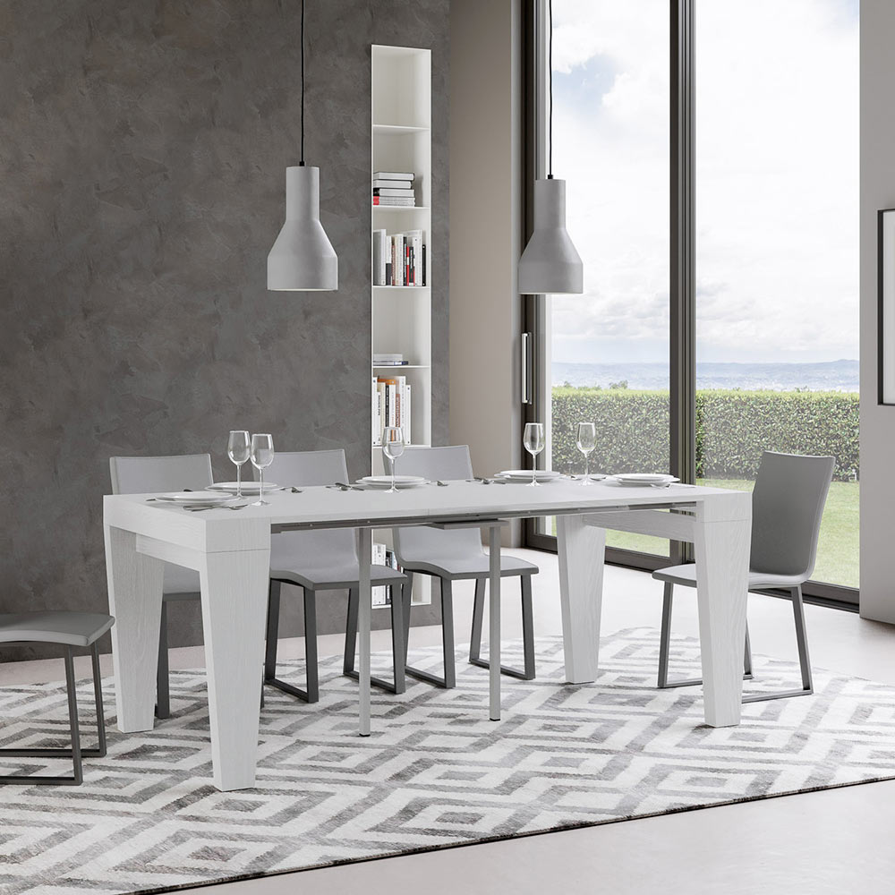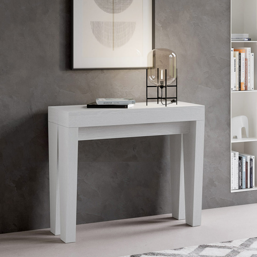 . Uitschuifbare consoletafel gemaakt van gemelamineerd hout, volledig Gemaakt in Italië. De consoletafel wordt geleverd met een twee steunpoten die zorgen voor eigen functionaliteit en stabiliteit wanneer het blad è uitgeschoven is.