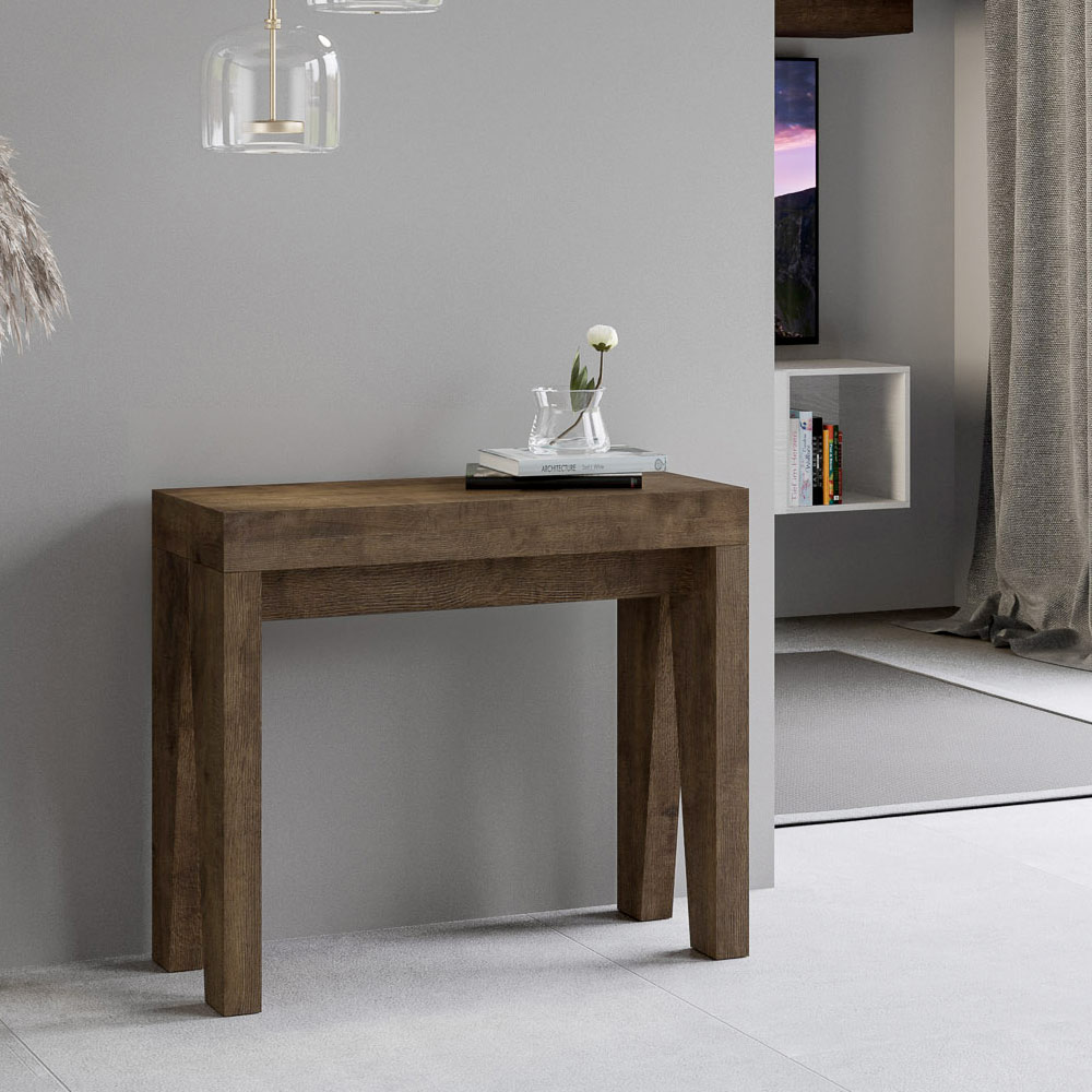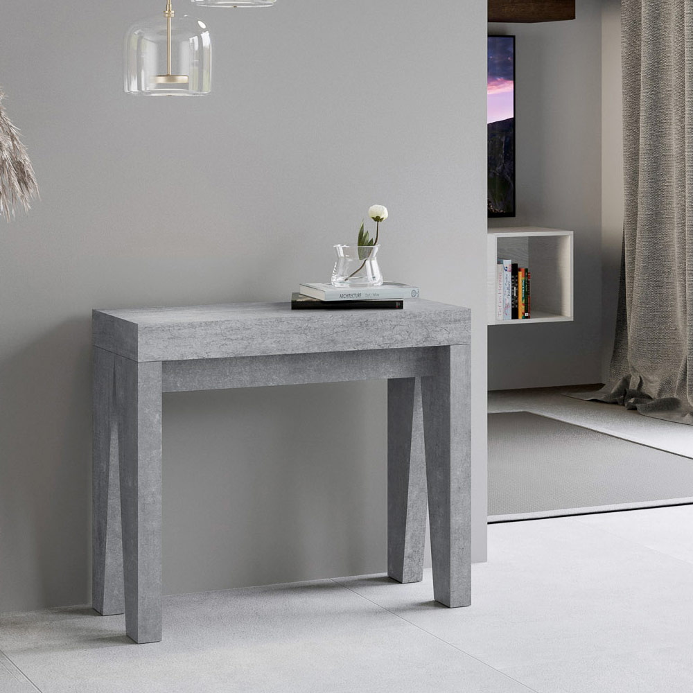 Ontdek de essentie van modern design met deze uitschuifbare consoletafel, een creatie die elegantie en functionaliteit in één meubelstuk belichaamt. Het blad en de poten herinneren aan de 'stedelijke architectuur en industriële trends, perfect voor een hedendaagse omgeving die kracht en karakter wil uitdrukken.