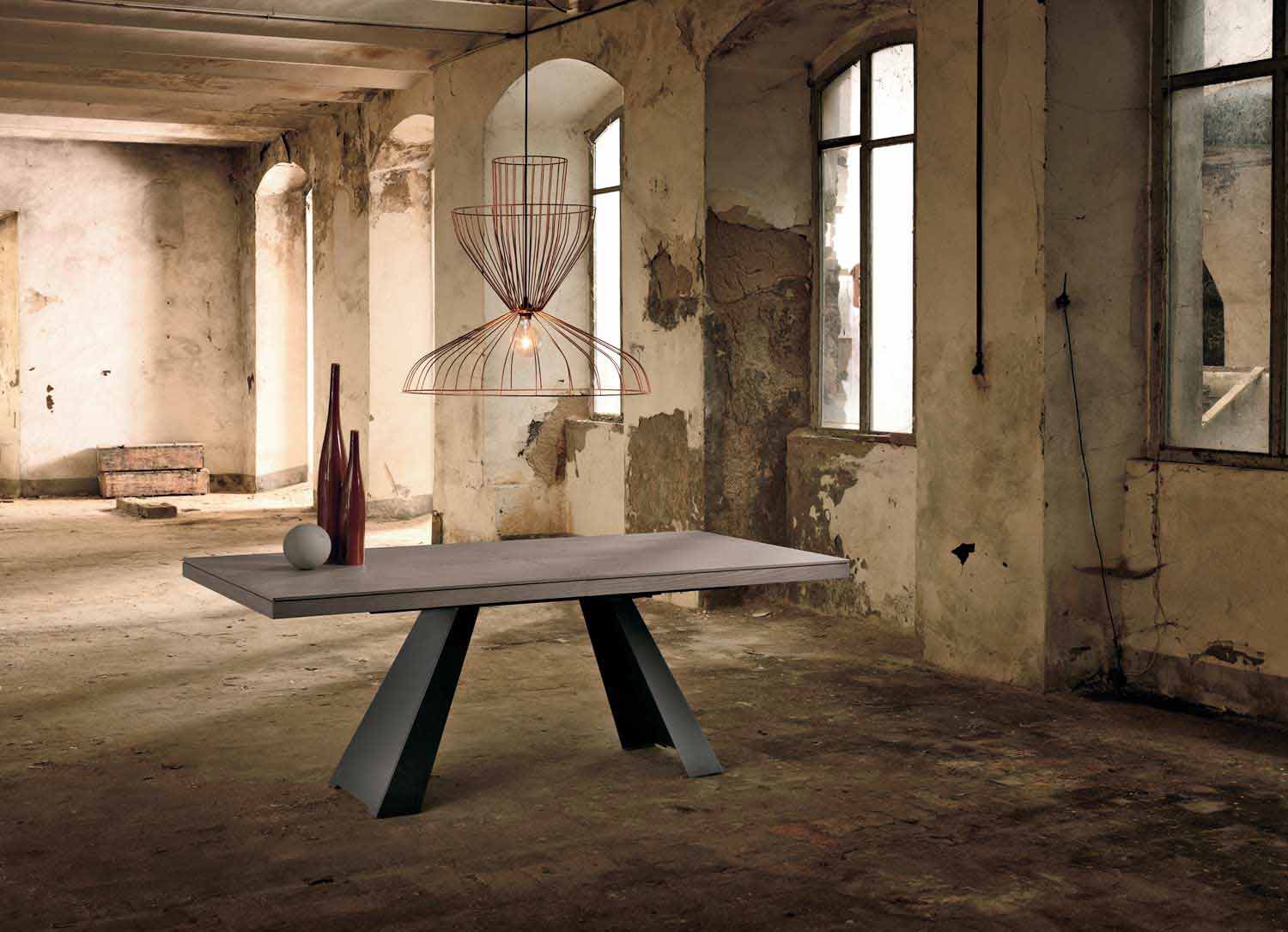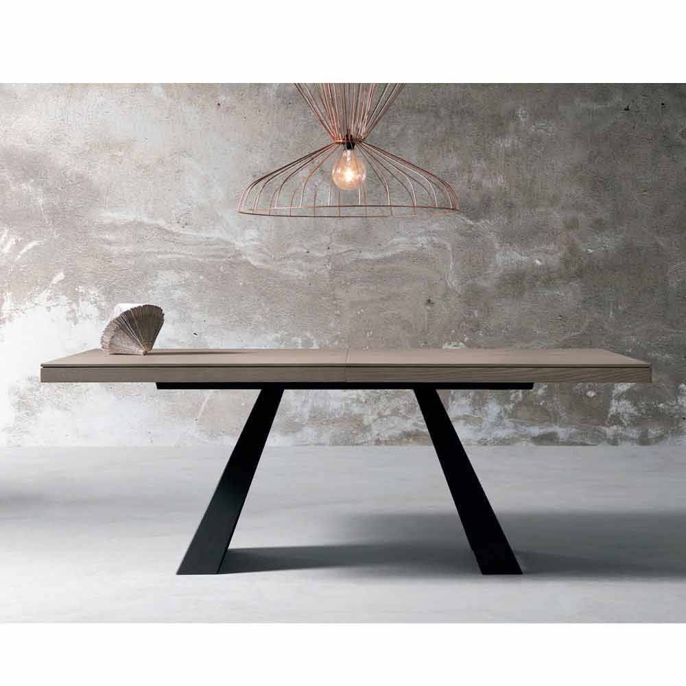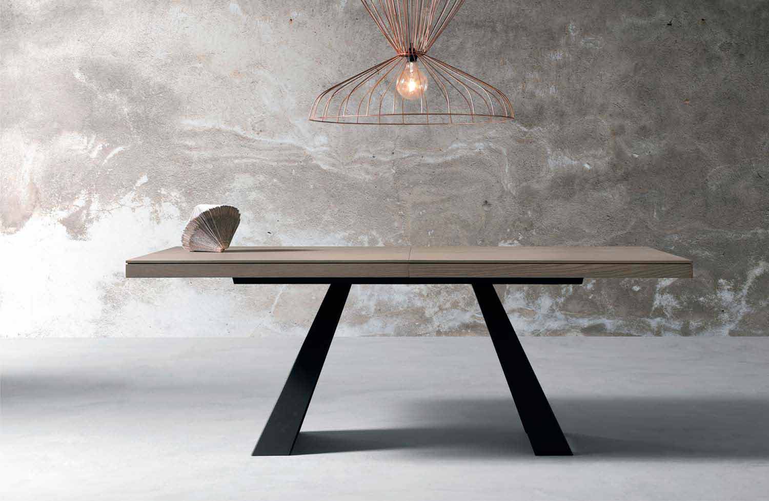 uitschuifbare eettafel met centrale schuif met een eigentijds design, volledig ontworpen en geproduceerd in Italië.