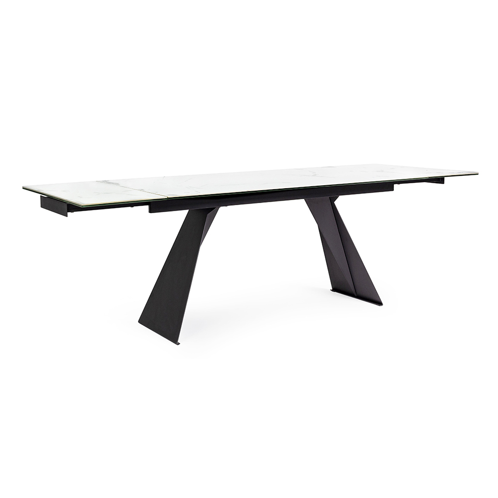 Uitschuifbare tafel met metalen onderstel en keramisch blad in marmeren afwerking - Lombo