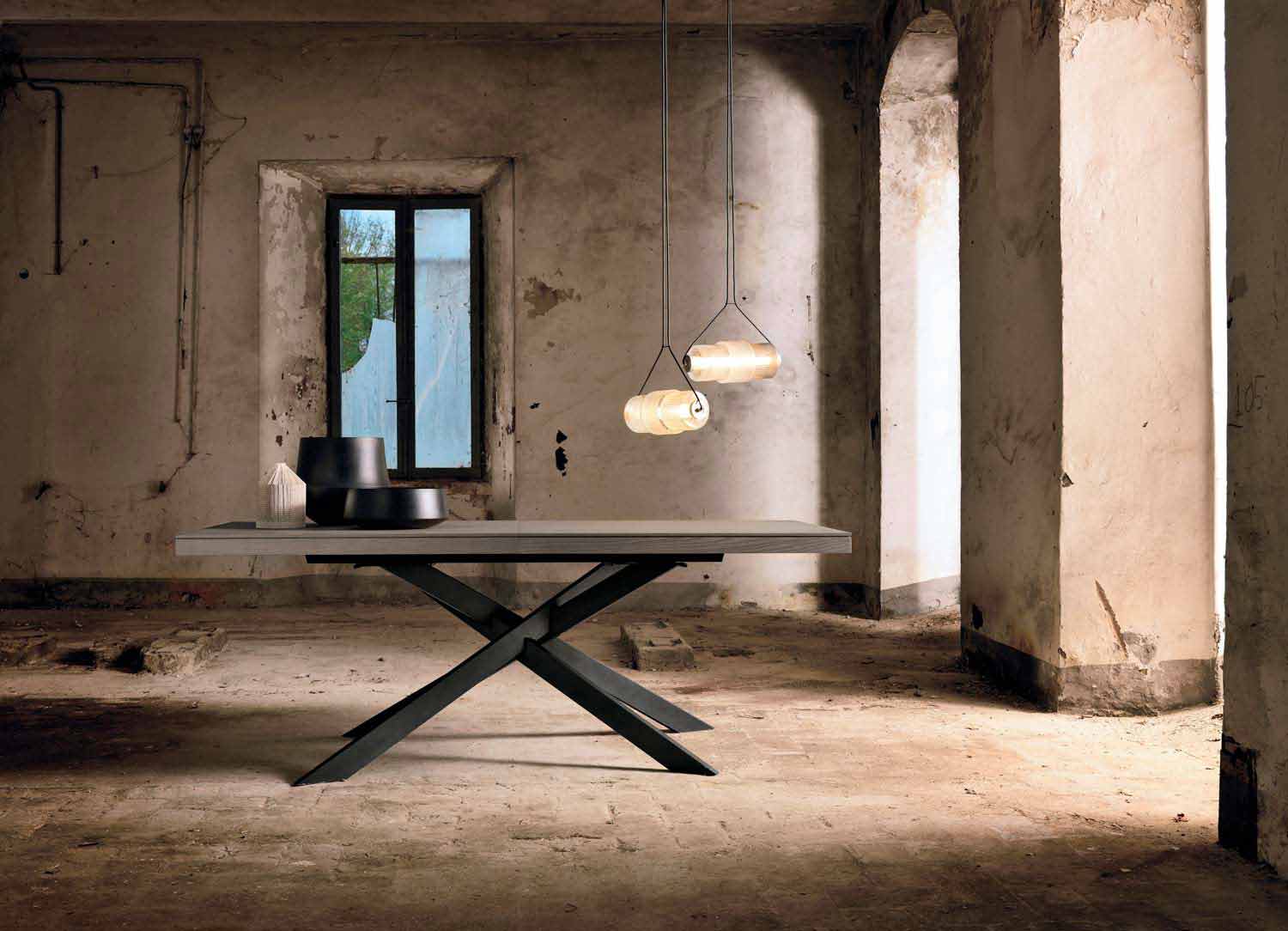 metalen structuur met gekruiste buizen en verstelbare poten in een antracietkleurige afwerking met micro-reliëf en een frame van geverfd geanodiseerd aluminium.