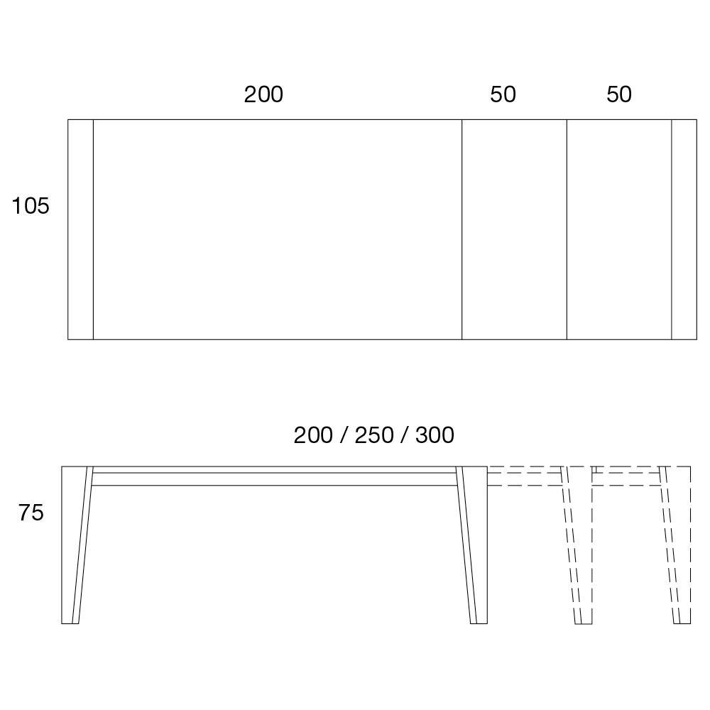 - B 200-250-300 x D 105 x H 75 cm - 2 verlengstukken