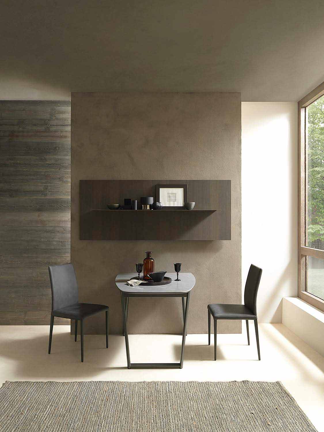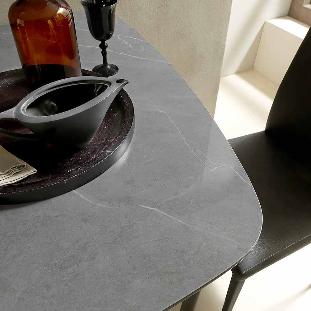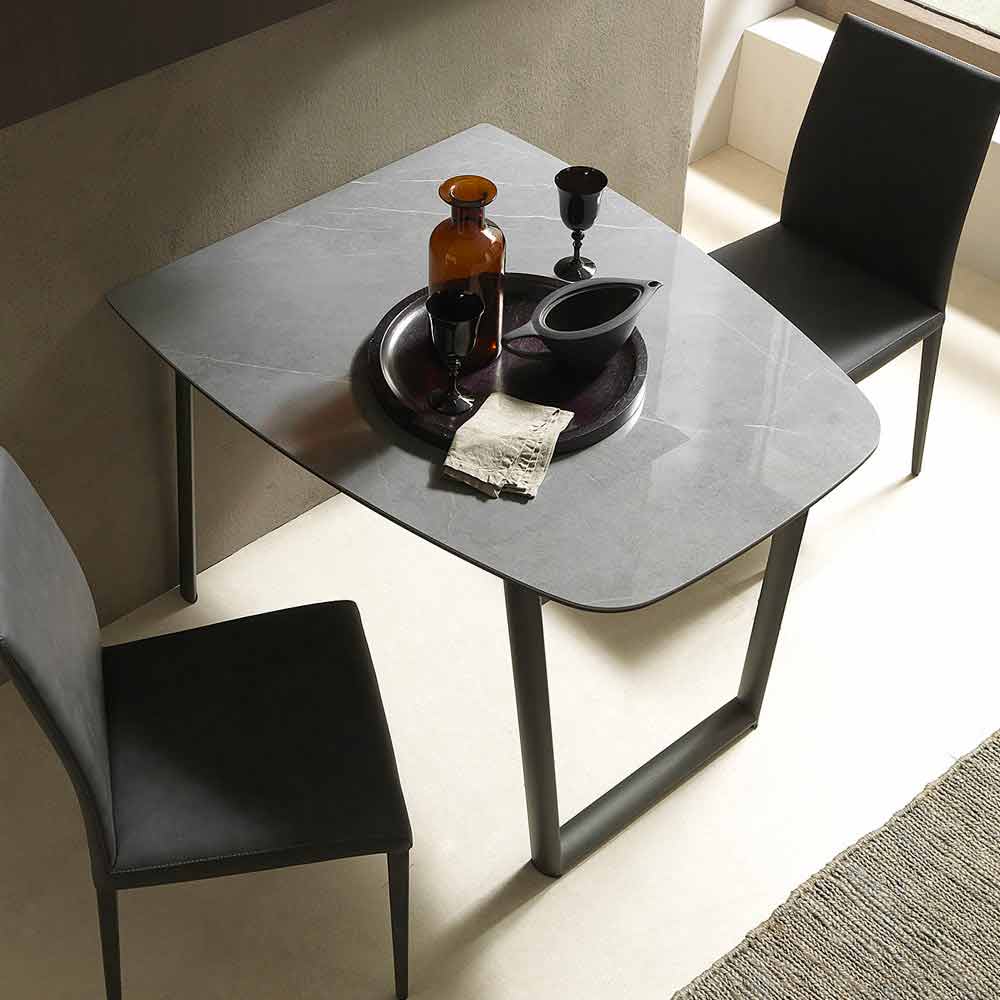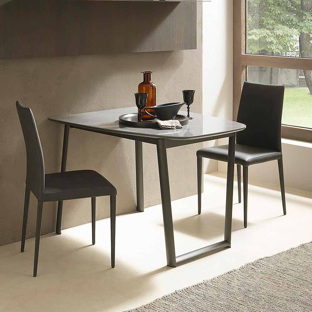 Uitschuifbare eettafel tot 170 cm in metaal met keramisch blad Made in Italy.