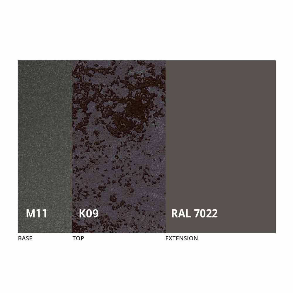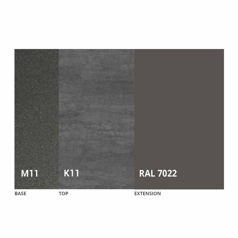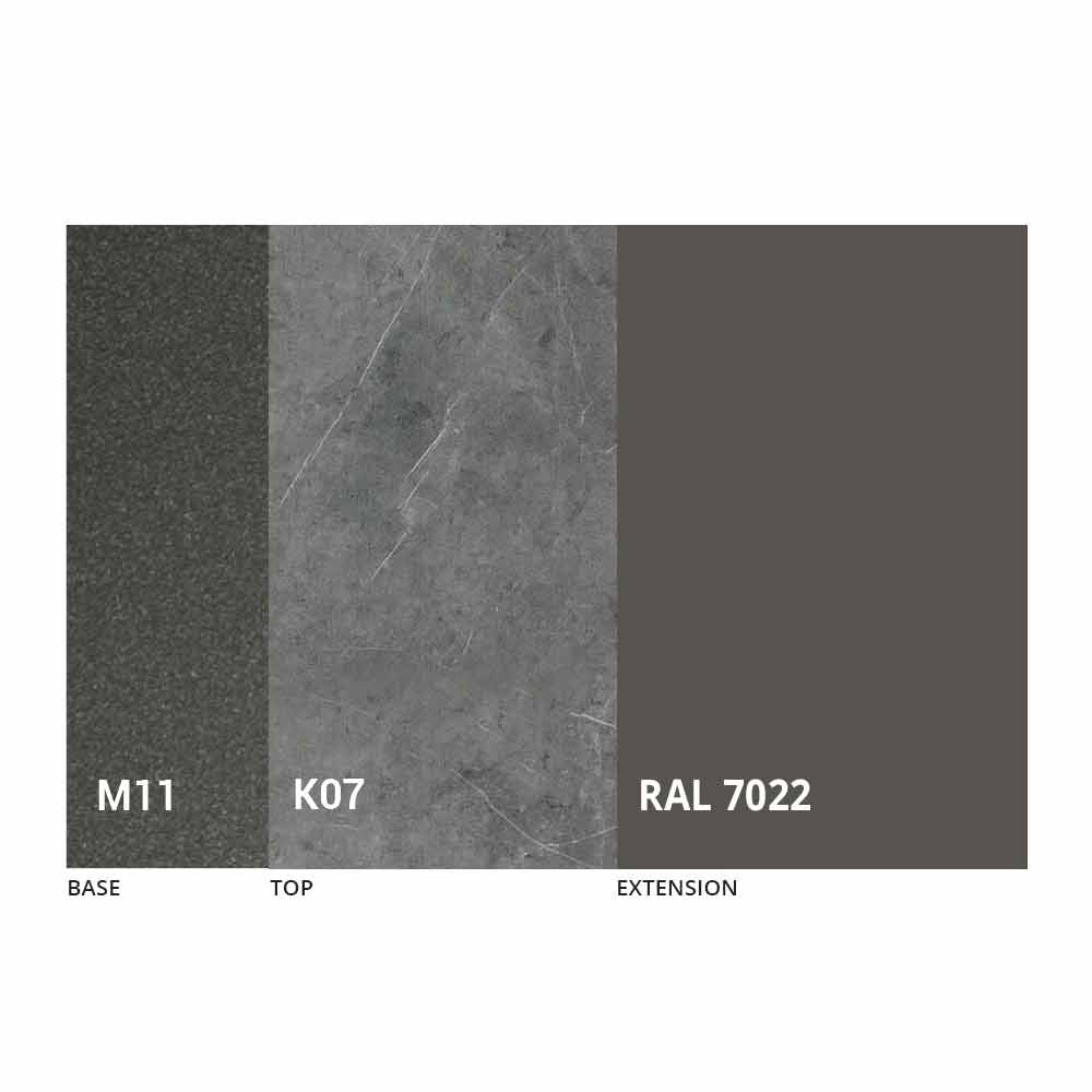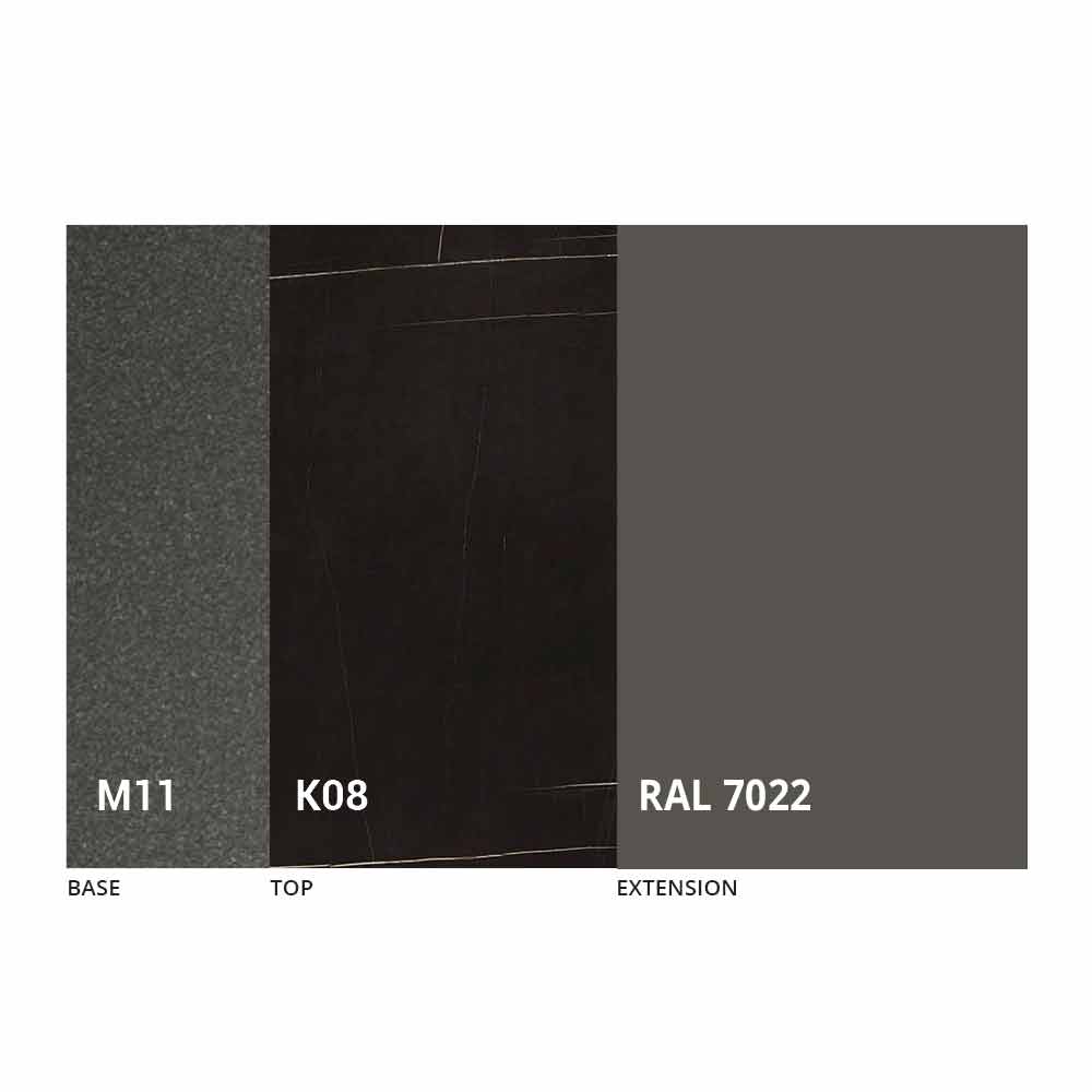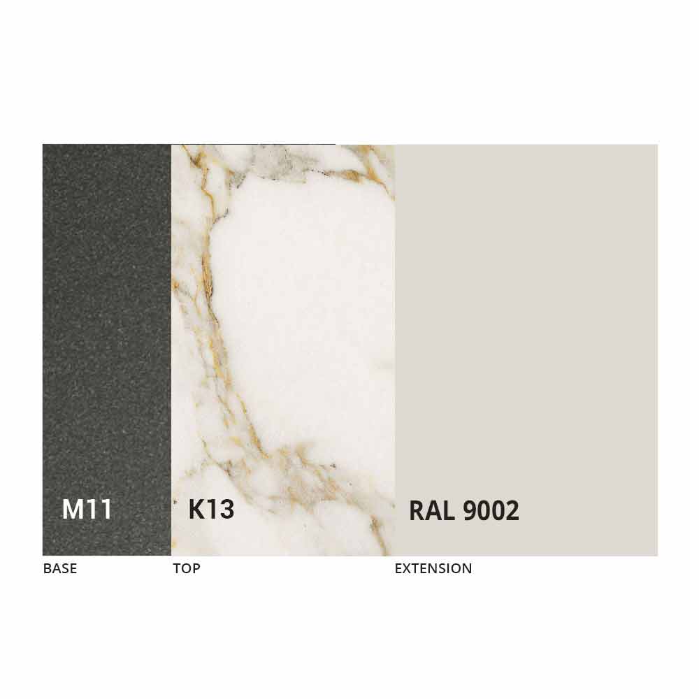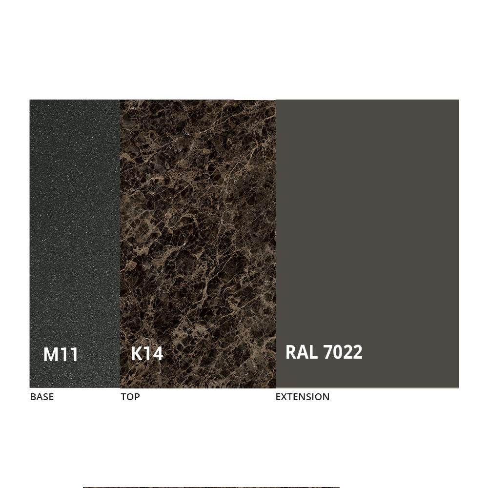 Het blad, de verlenging en het onderstel van de tafel kunnen worden aangepast met verschillende voorbeeldafwerkingen. Neem voor informatie contact met ons op via het formulier "
