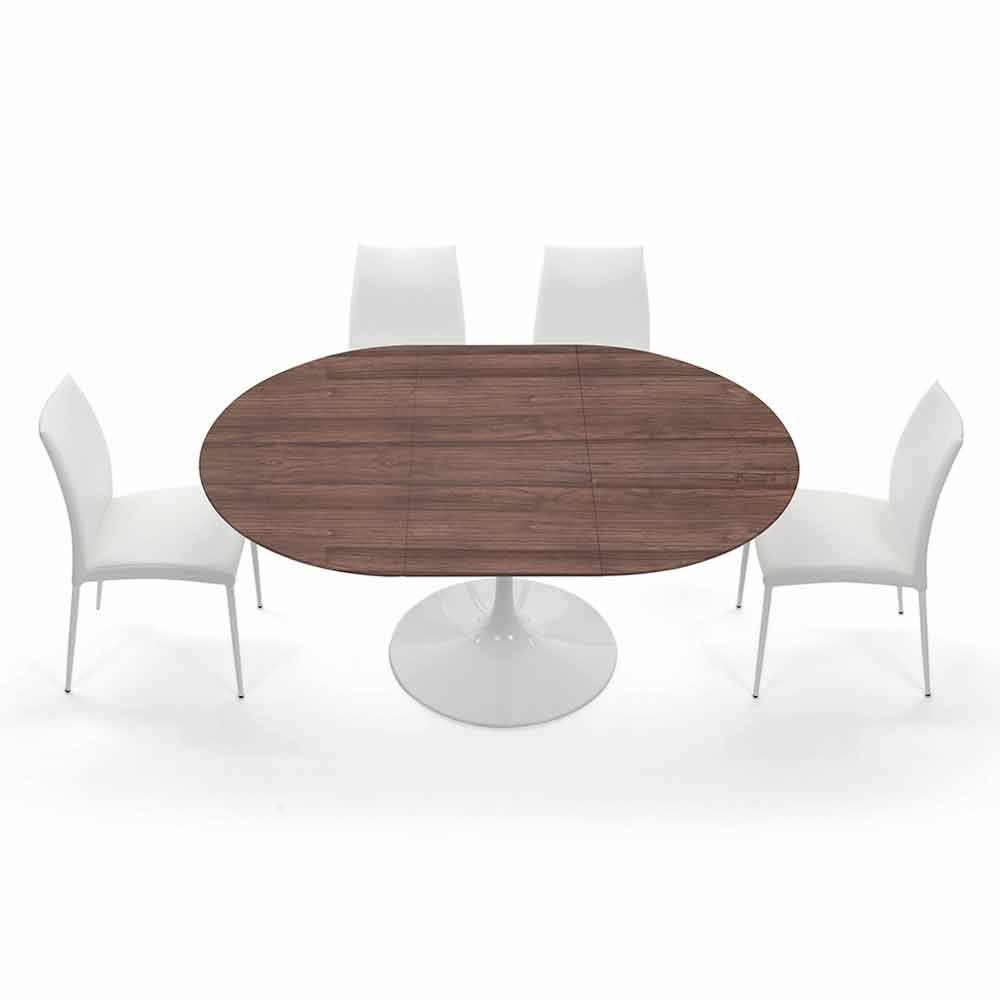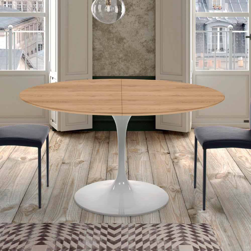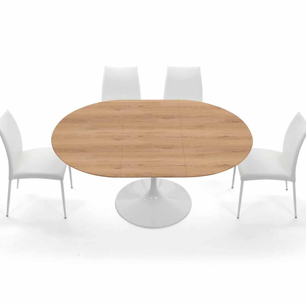 uitschuifbare blad onderstreept, dat dankzij een externe verlenging van 50 cm de mogelijkheid biedt om maximaal 8 personen te huisvesten, terwijl ze eenmaal gesloten een kleinere ruimte in beslag nemen. De toets die de tafel kenmerkt, hem uniek maakt en hem een