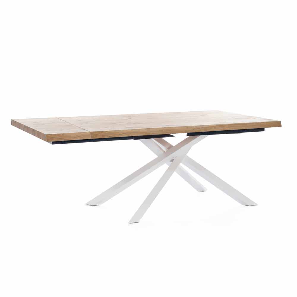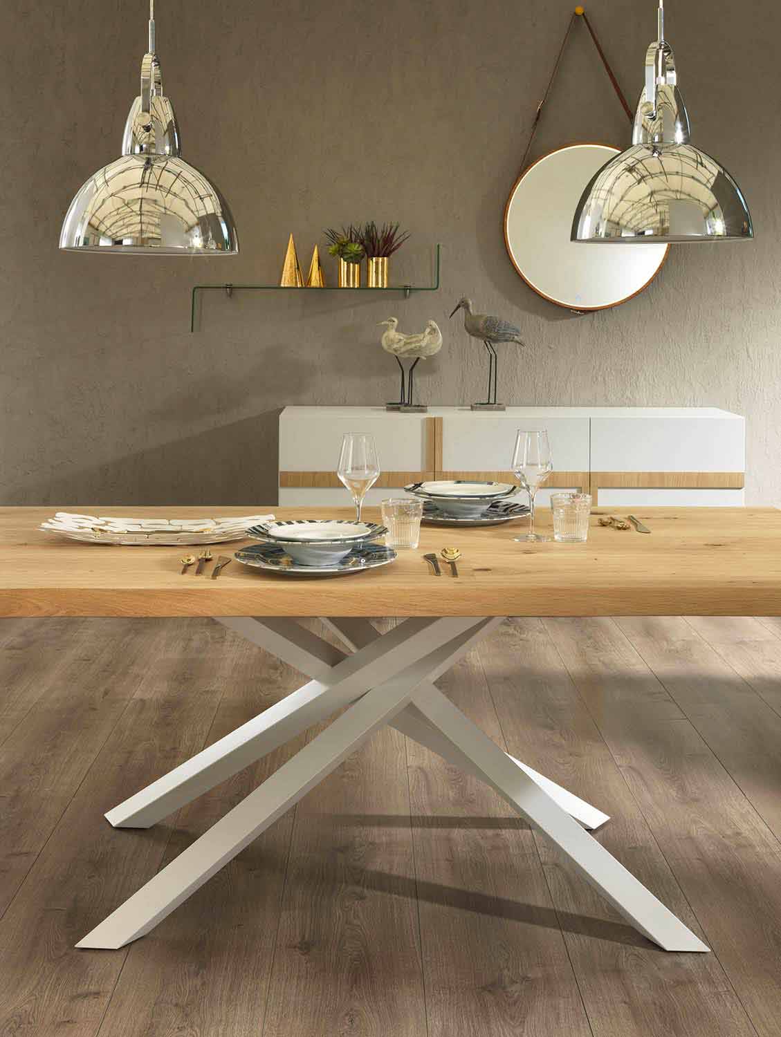 Xino is gemaakt met een geverfd metalen onderstel verkrijgbaar in twee kleuren en een houten blad dat ook verkrijgbaar is in twee verschillende afwerkingen en wordt ook gekenmerkt door de mogelijkheid om te worden verlengd tot 240 of 300 cm dankzij de externe verlengstukken ook in grijs essenfineer, dus meer ruimte krijgen en u in staat stellen vrienden en familie te ontvangen zonder comfort op te geven.