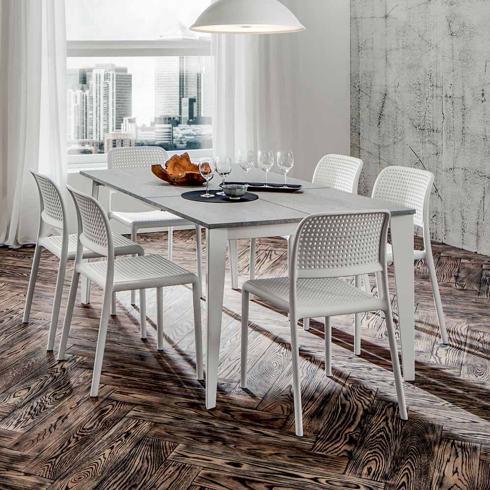 Uitschuifbare eettafel met vierkant blad in hpl Made in Italy, hoge kwaliteit.