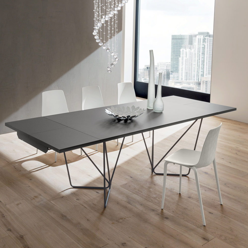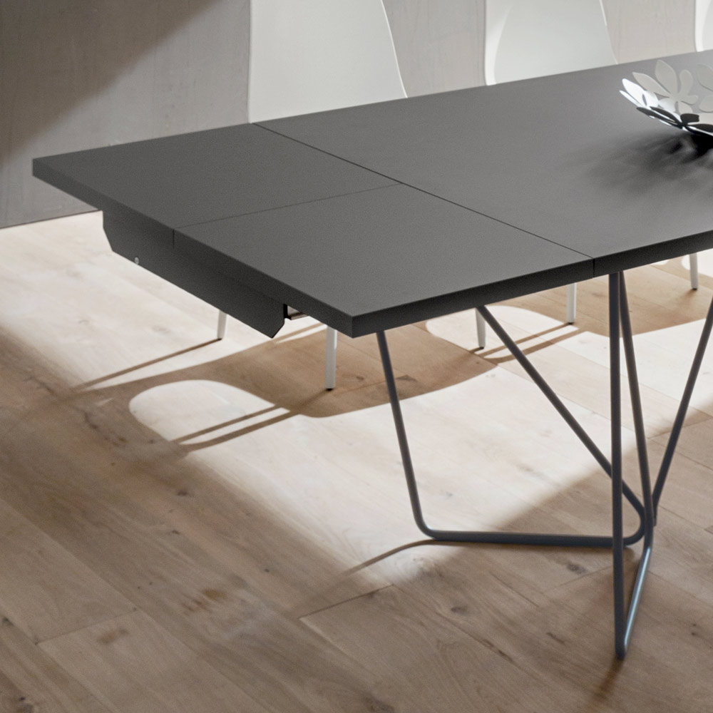 Uitschuifbare tafel in fenix en gelakt metaal Made in Italy, hoge kwaliteit.