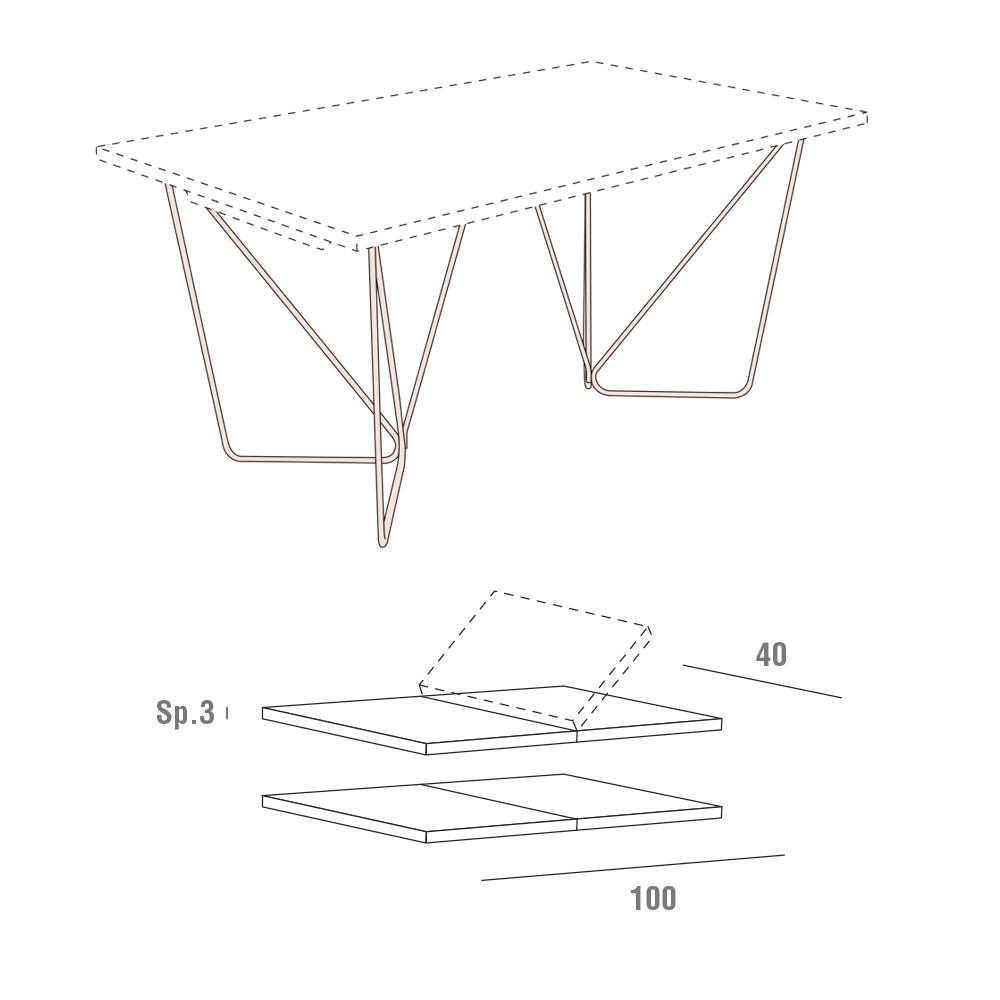 twee zijverlengingen (elk 40 cm) die bij het blad passen met een inklapbaar openingsmechanisme. Op deze manier wordt de tafel een inrichtingsoplossing die bijzonder geschikt is voor degenen die graag lunches en diners organiseren door vrienden en familieleden te ontvangen voor prachtige momenten in gezelschap, en na sluiting weer een kleinere ruimte innemen. Wat de kwaliteit en waarde van de tafel verhoogt, is de keuze om fenix te gebruiken, een materiaal dat door het gebruik van