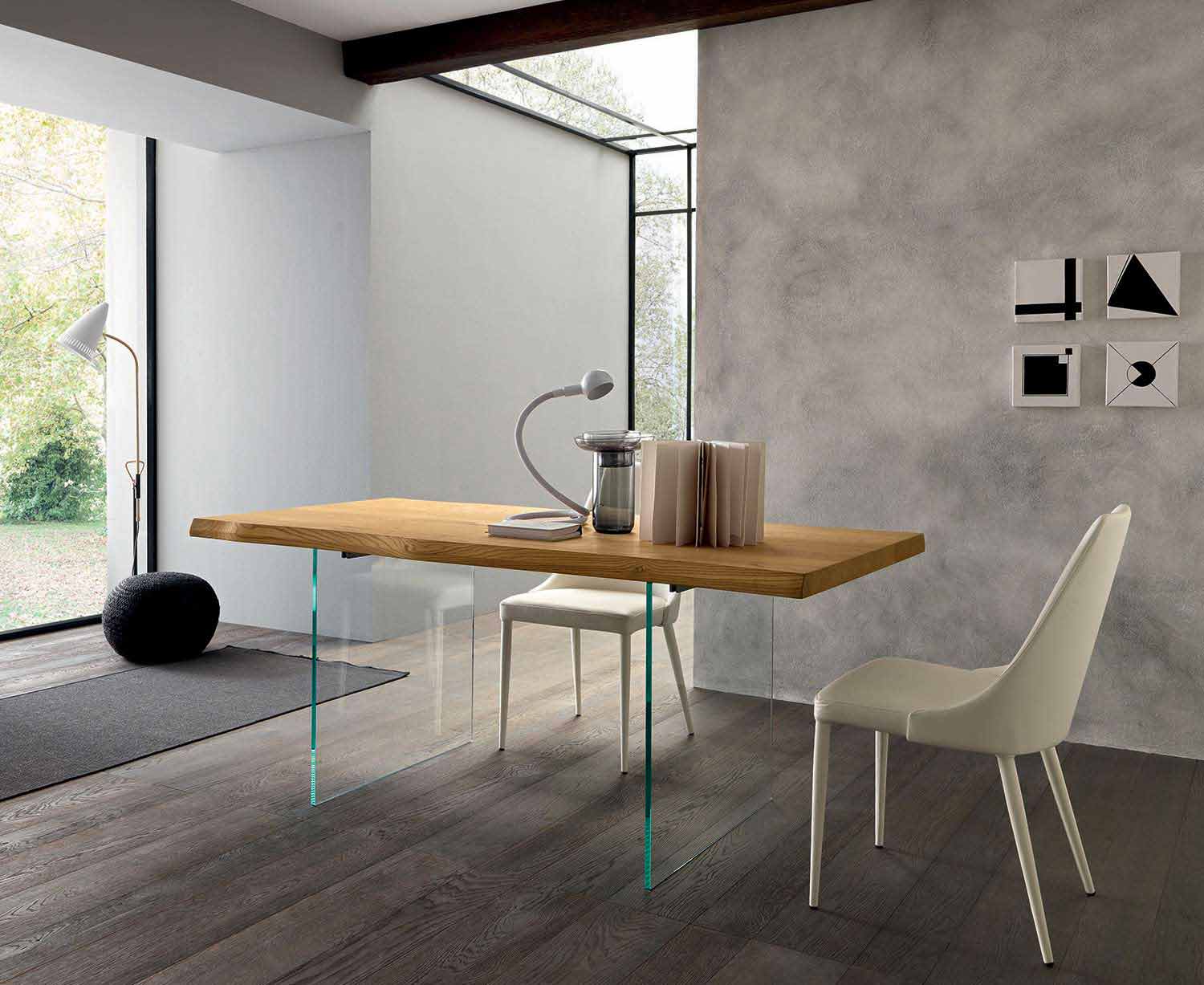 Uitschuifbare eettafel met houten blad en glazen structuur Made in Italy.
