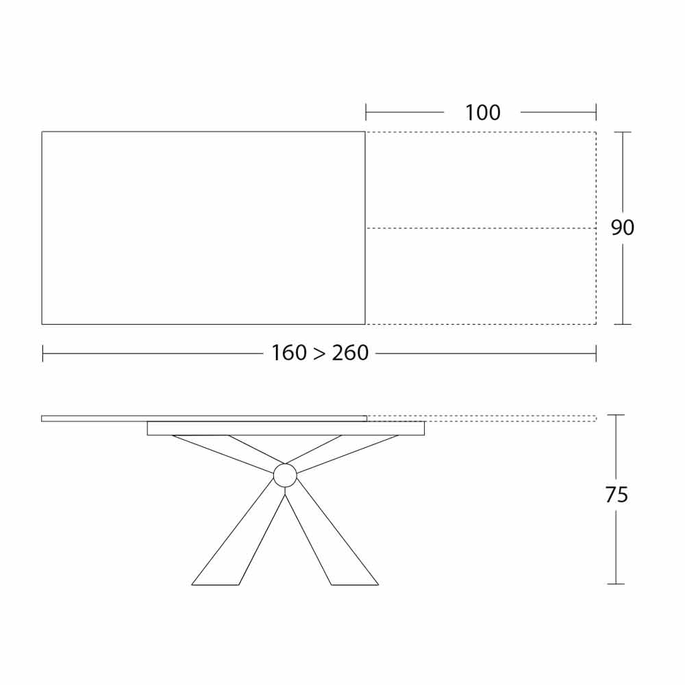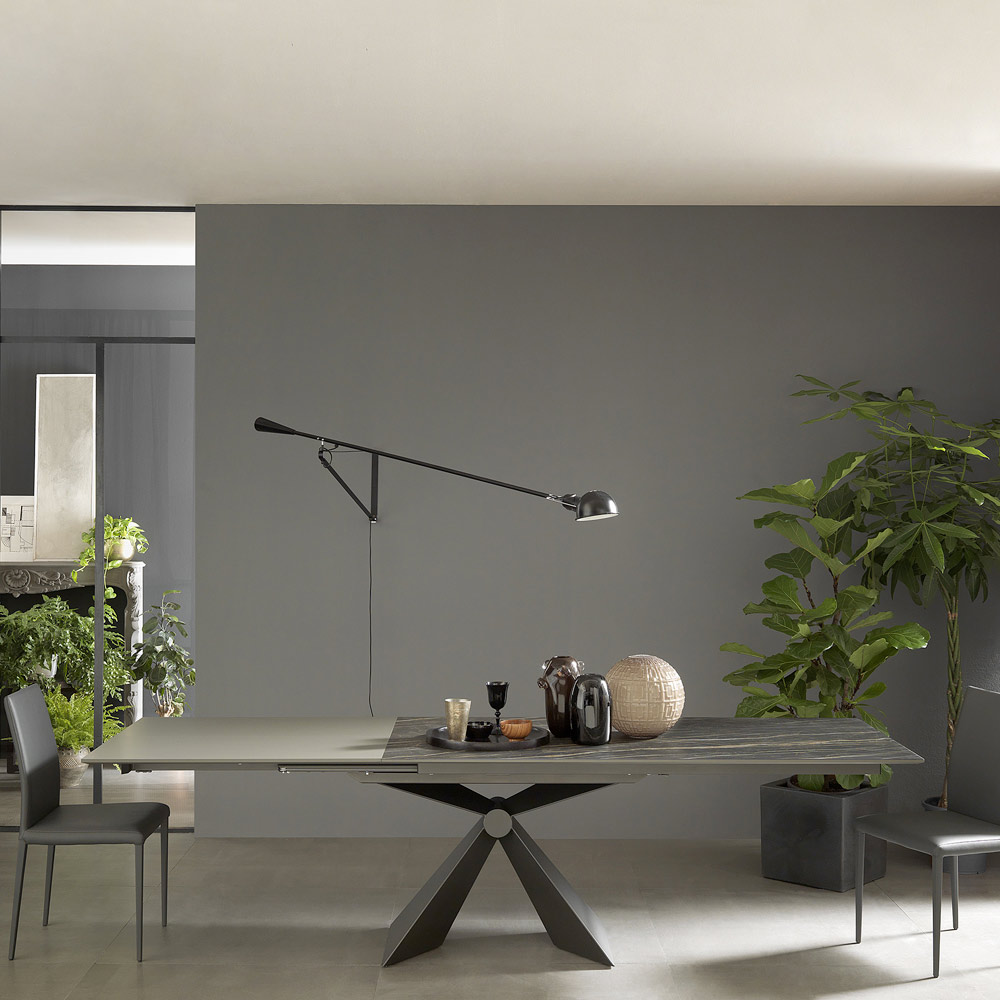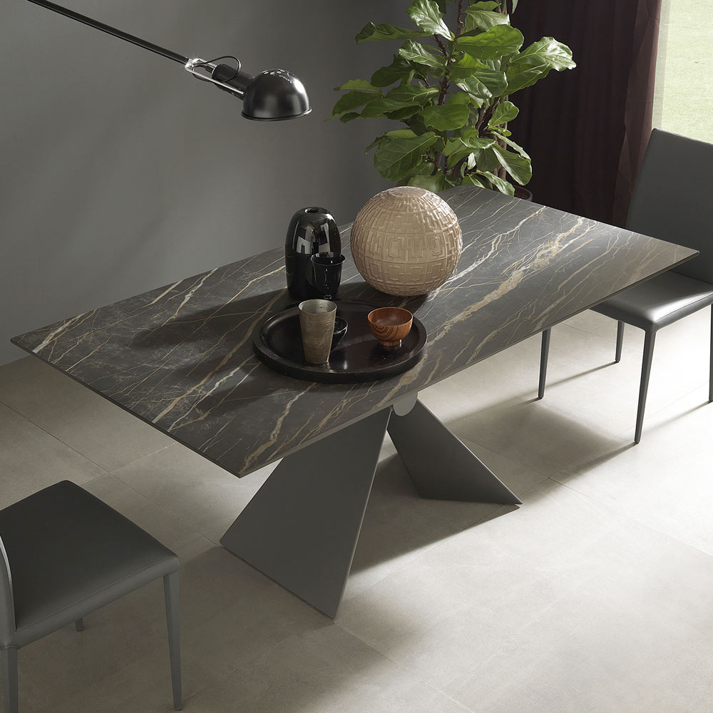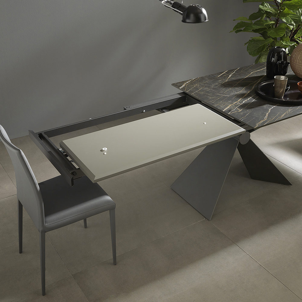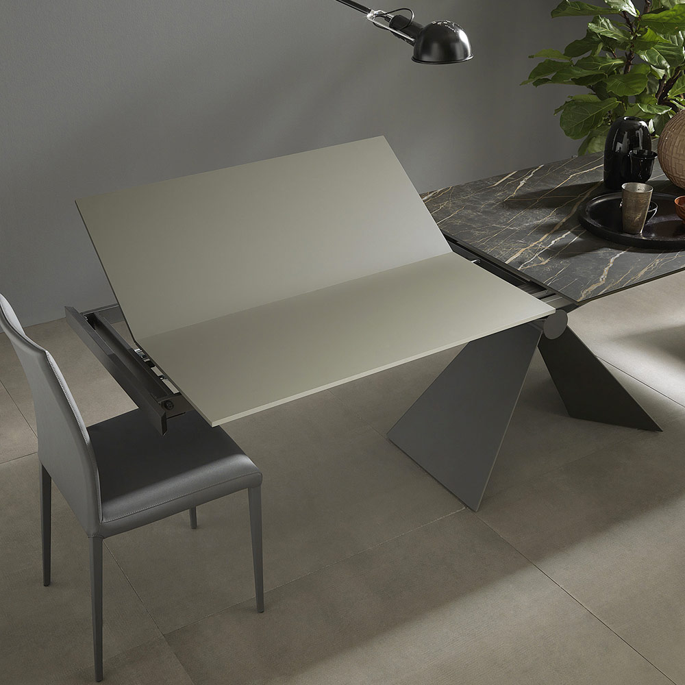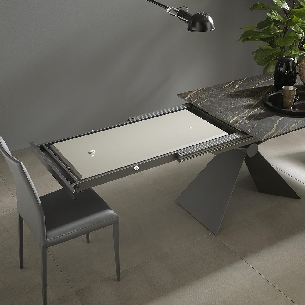 Moderne uitschuifbare eettafel van keramiek en metaal Made in Italy.