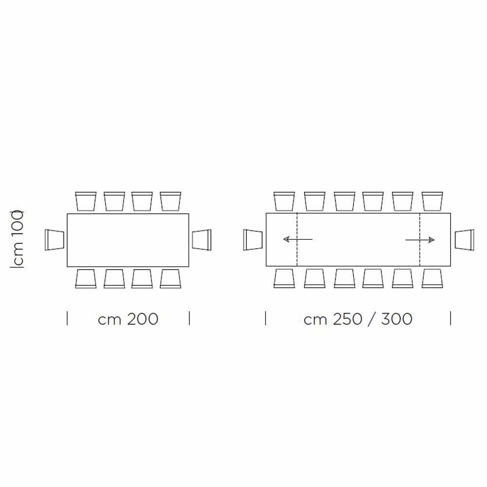 - L 200/300 x D 100 x H 75,3 cm 14 zitplaatsen (2 verlengstukken van 50 cm).
