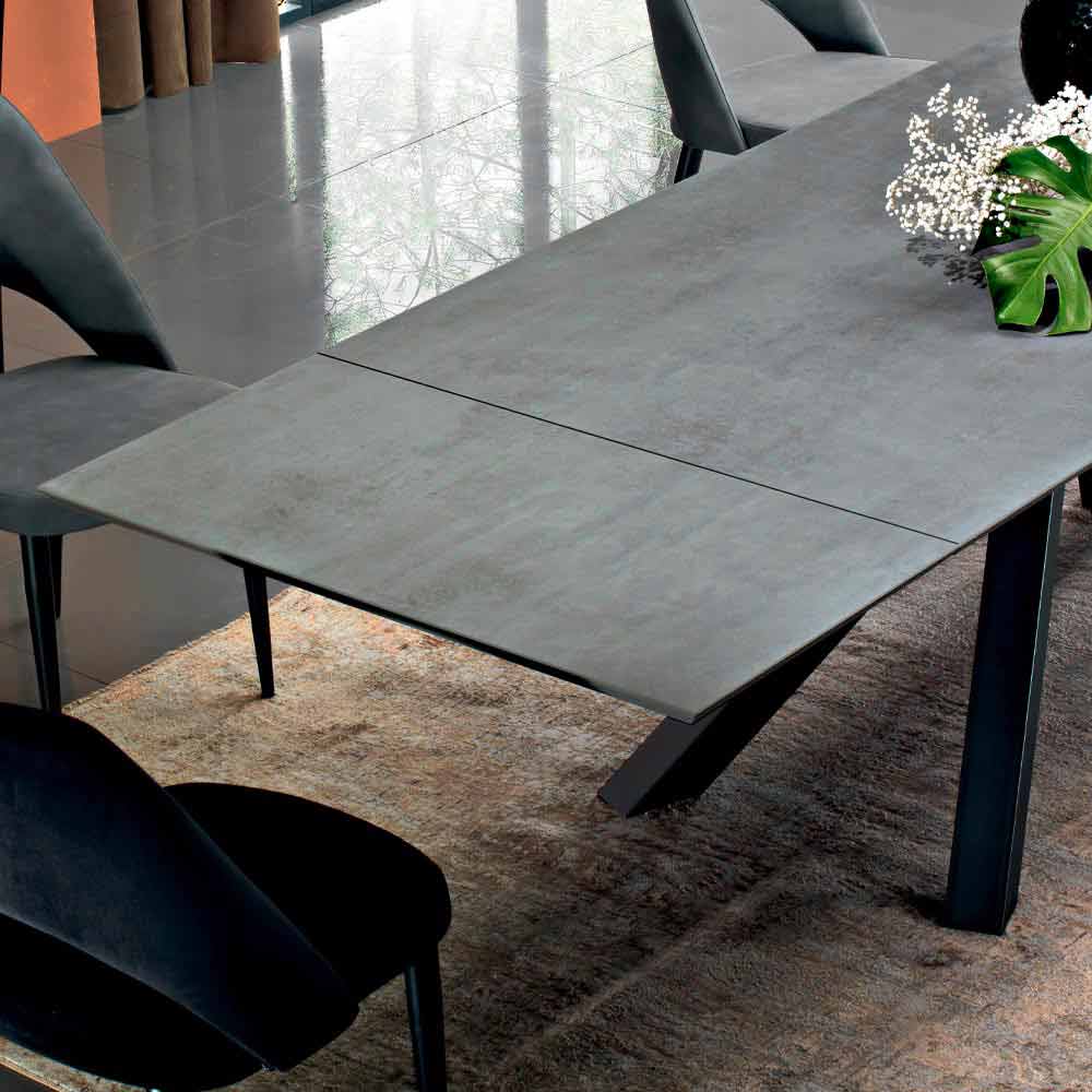 Uitschuifbare eettafel met HPL-laminaatblad en stalen onderstel, hoge kwaliteit Made in Italy.