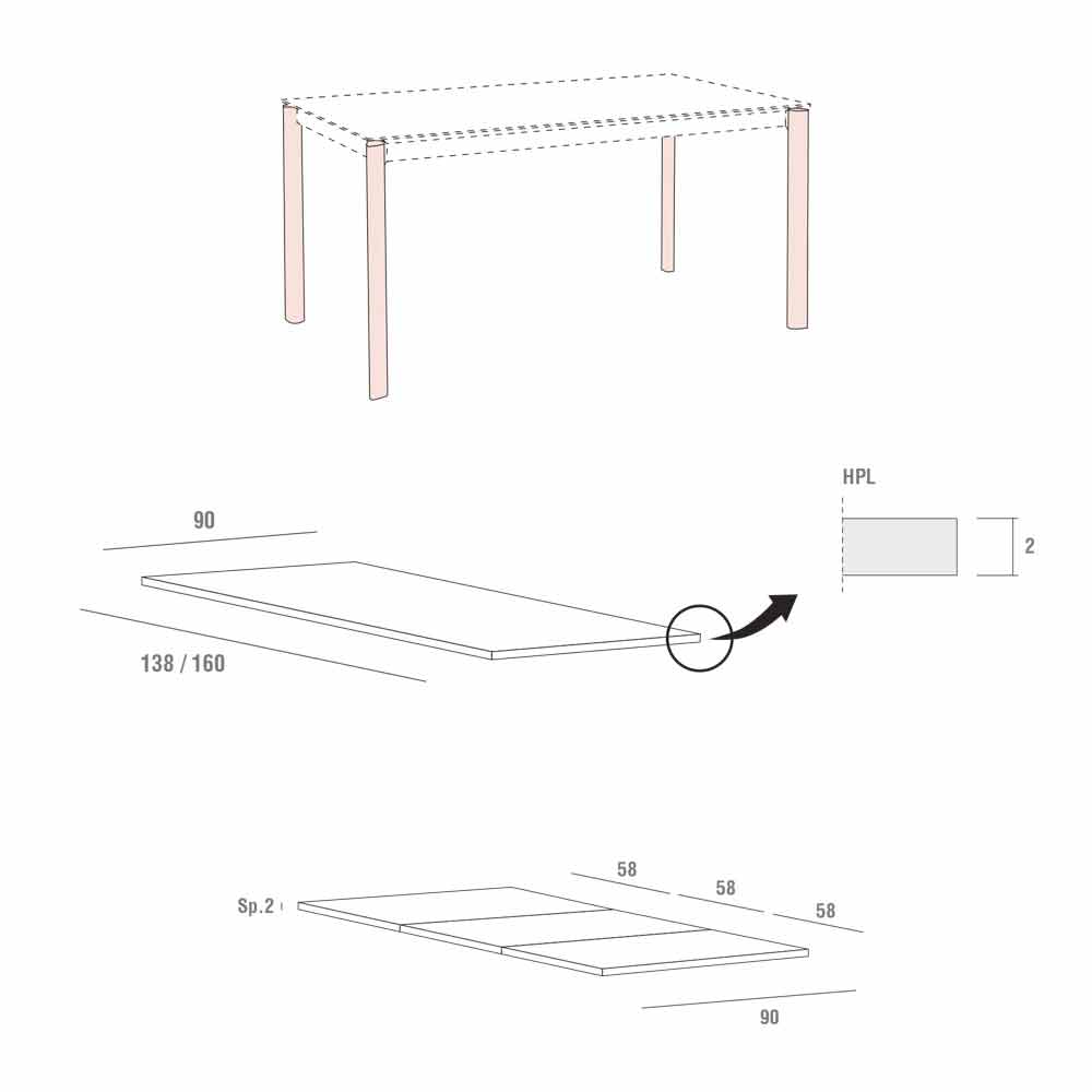 uitschuifbare blad dat een lengte van 334 cm kan bereiken, waardoor het het perfecte idee is voor degenen die graag lunches en diners met vrienden organiseren en een oplossing nodig hebben die even praktisch als modern is en in staat is een prachtige sfeer te creëren. harmonie met de omringende meubels. Om de prachtige esthetiek te onderstrepen is de HPL-top, a