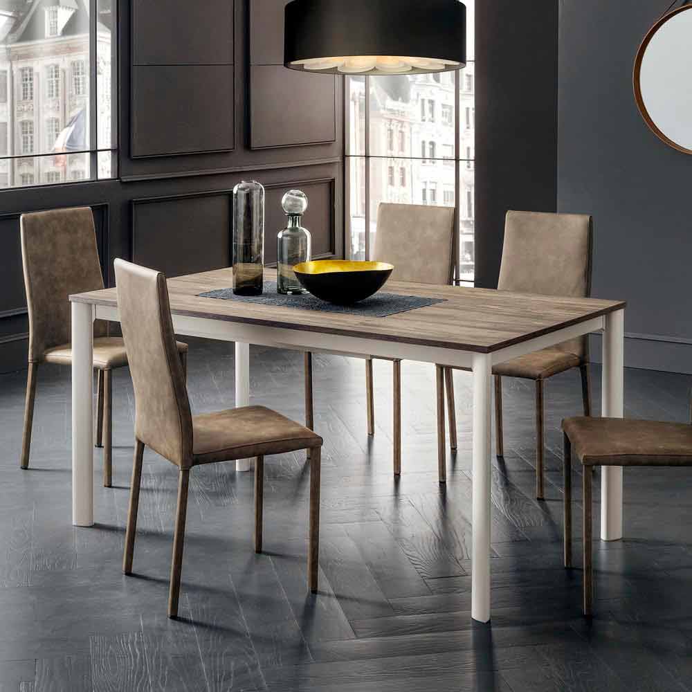 Eettafel met uitschuifbaar blad in hpl met houteffect gemaakt in Italië, hoge kwaliteit.
