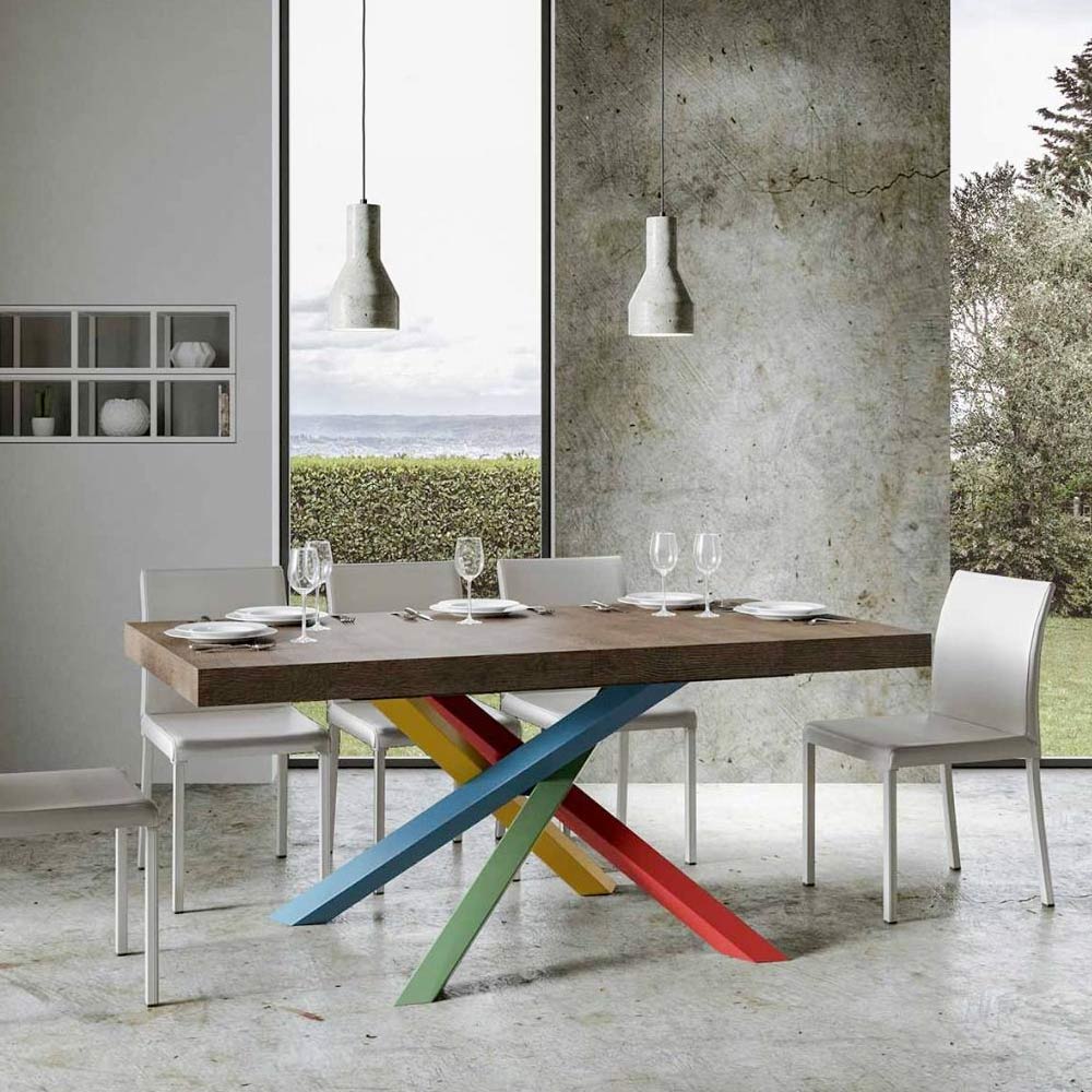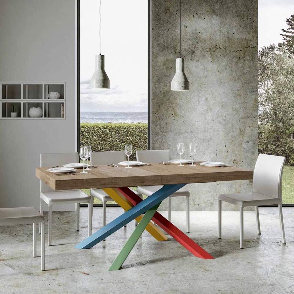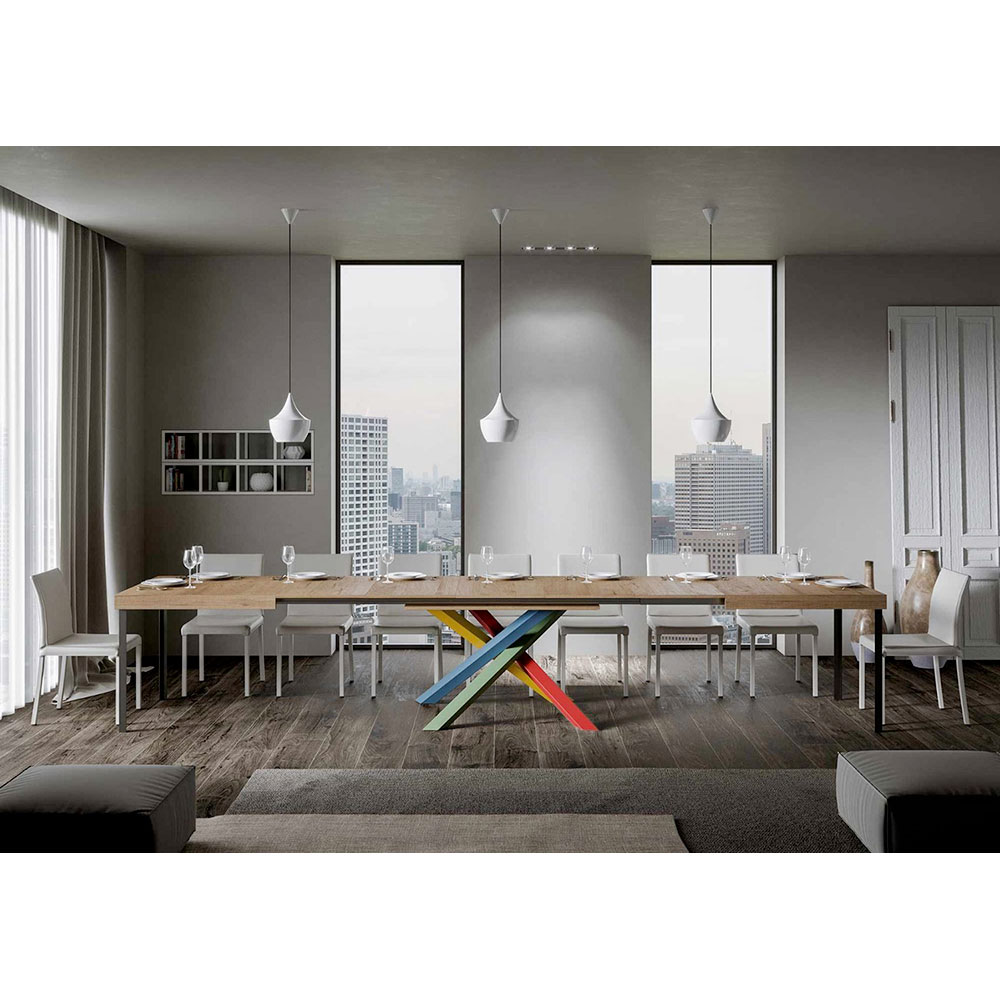 Ontdek de uitschuifbare tafel, een meesterwerk van modern design dat opvalt door zijn unieke silhouet en veelzijdige functionaliteit. Het houten blad verbetert de helderheid van de ruimte en biedt een glad en stevig oppervlak dat uitnodigt tot dagelijks gebruik. Het onderstel van de tafel è een waar geometrisch spektakel, met gekruiste poten die in elkaar overlopen in een spel van kleuren. De voorgestelde combinatie è : Poot 1: Karmijnrood (RAL 3002). Poot 2: Geelachtig groen (RAL 6018). Leg 3: Ver weg blauw (RAL 5023). Leg 4: signaalgeel (RAL 1003). RAL-kleuren zijn opaque. Deze combinatie voegt niet alleen een vleugje vitaliteit toe aan het ontwerp, maar zorgt ook voor stabiliteit&strong> en stevigheid. Het verlengmechanisme van de tafel is even simpel als technisch, waardoor dit elegante meubel kan worden getransformeerd van een praktische tafel voor vier personen tot een gezellige ruimte voor het houden van grotere diners en vergaderingen.