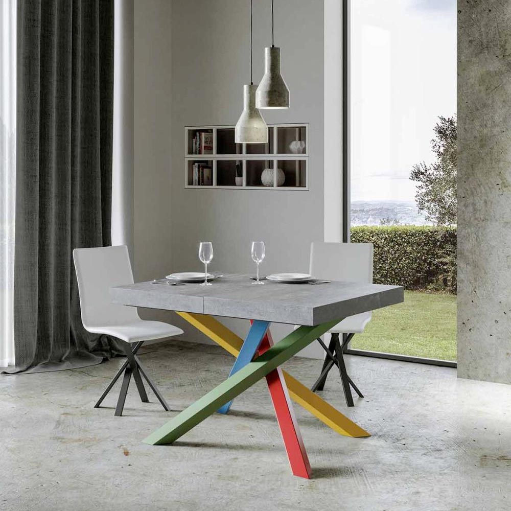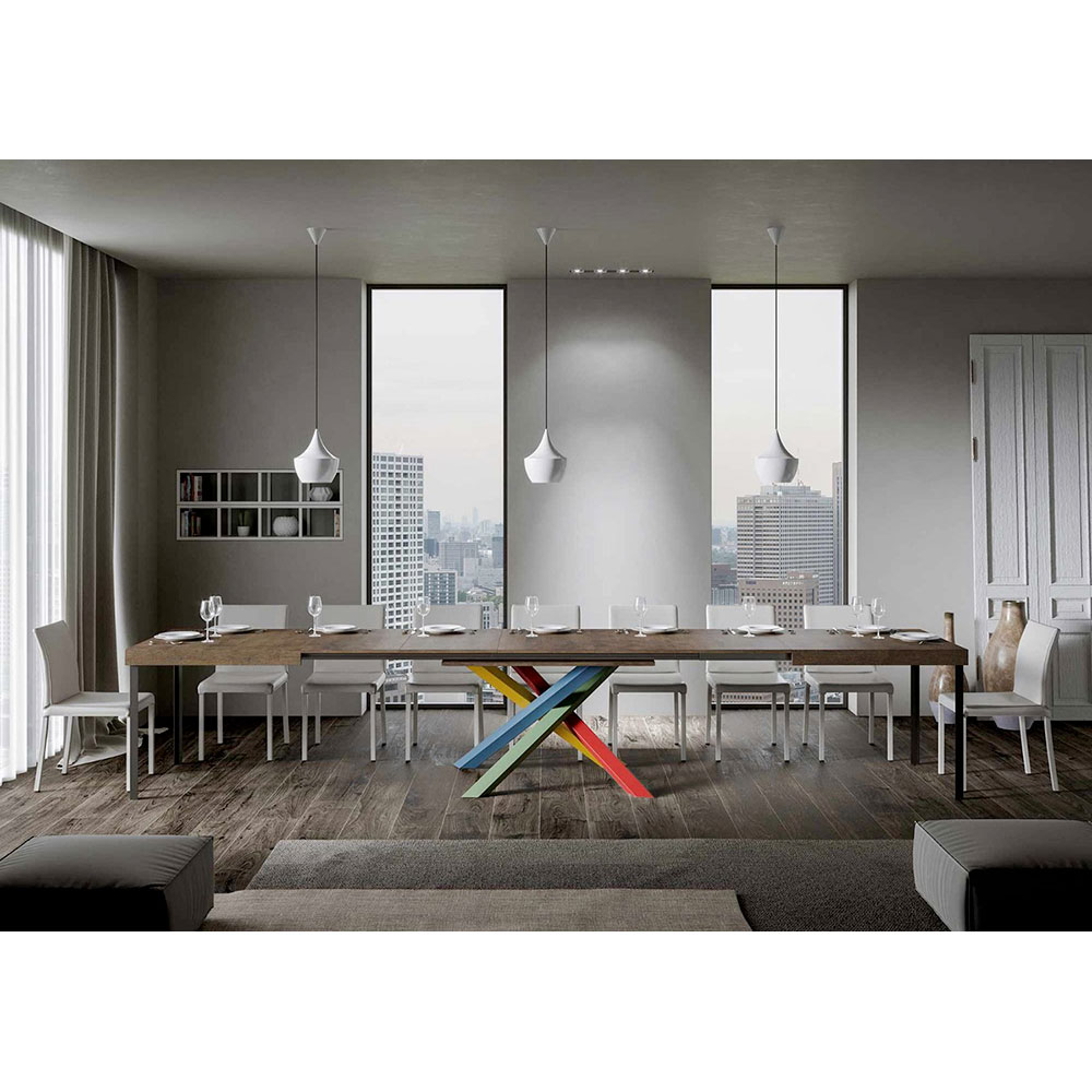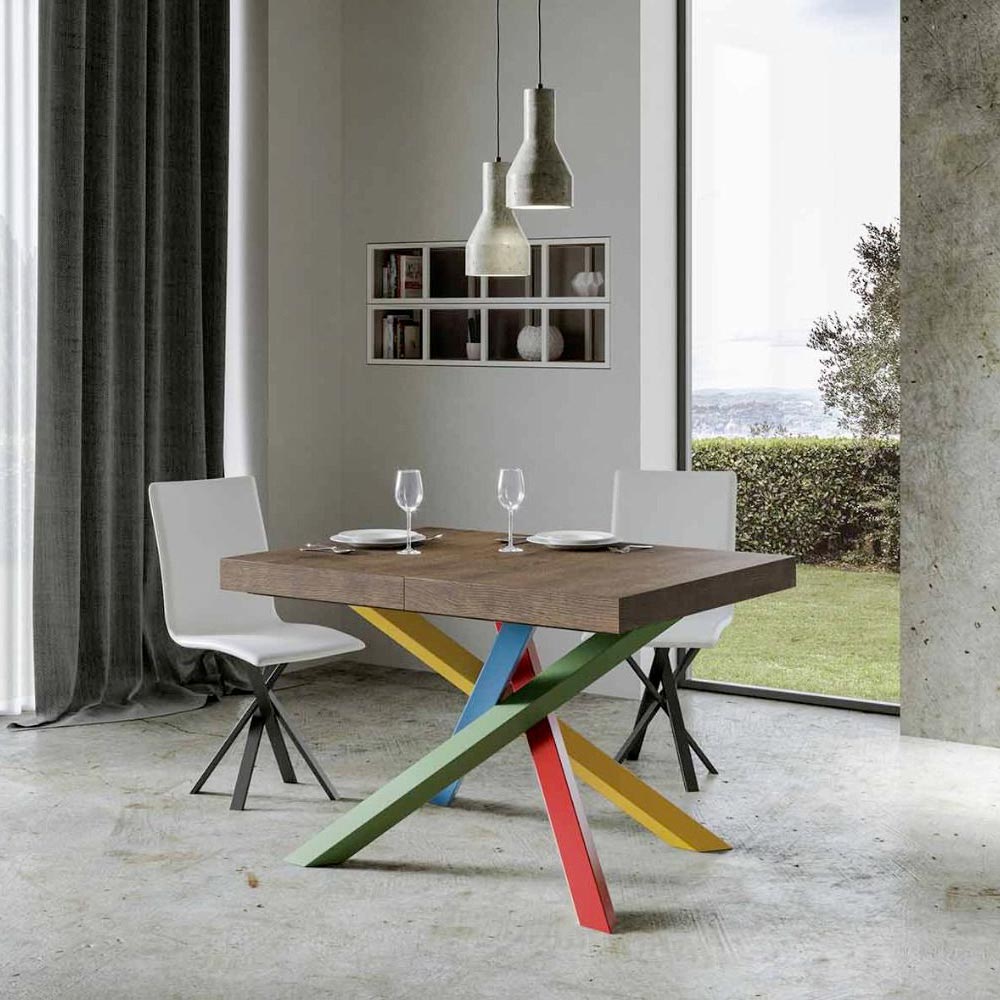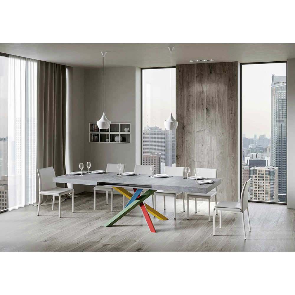 Ontdek de uitschuifbare tafel, een meesterwerk van modern design dat opvalt door zijn unieke silhouet en veelzijdige functionaliteit. Het houten blad verbetert de helderheid van de ruimte en biedt een glad en stevig oppervlak dat uitnodigt tot dagelijks gebruik. Het onderstel van de tafel è een waar geometrisch spektakel, met gekruiste poten die in elkaar overlopen in een spel van kleuren. De voorgestelde combinatie è : Poot 1: Karmijnrood (RAL 3002). Poot 2: Geelachtig groen (RAL 6018). Leg 3: Ver weg blauw (RAL 5023). Leg 4: signaalgeel (RAL 1003). RAL-kleuren zijn opaque. Deze combinatie voegt niet alleen een vleugje vitaliteit toe aan het ontwerp, maar zorgt ook voor stabiliteit&strong> en stevigheid. Het verlengmechanisme van de tafel is even simpel als technisch, waardoor dit elegante meubel kan worden getransformeerd van een praktische tafel voor vier personen tot een gezellige ruimte voor het houden van grotere diners en vergaderingen.