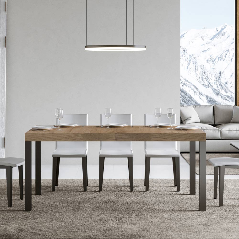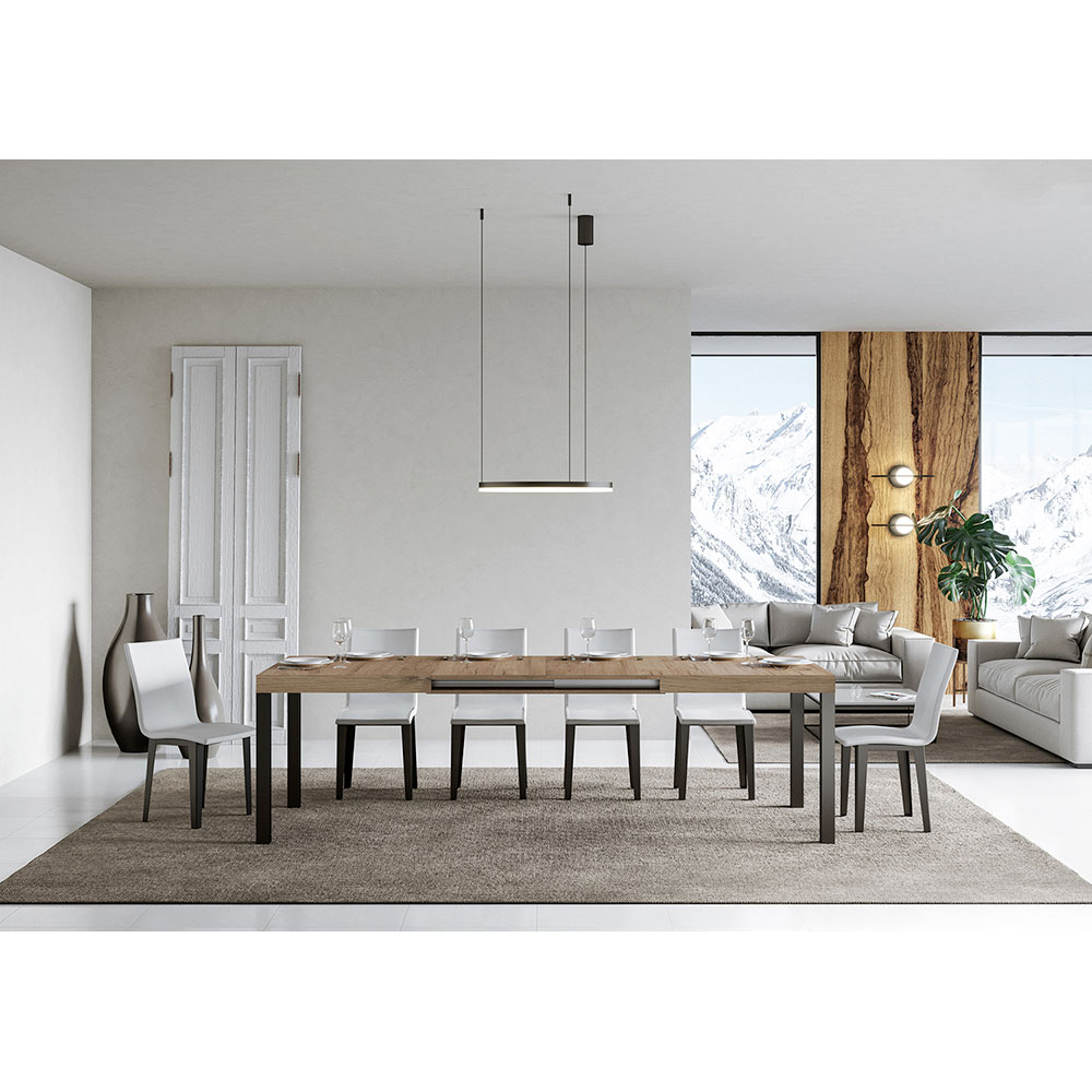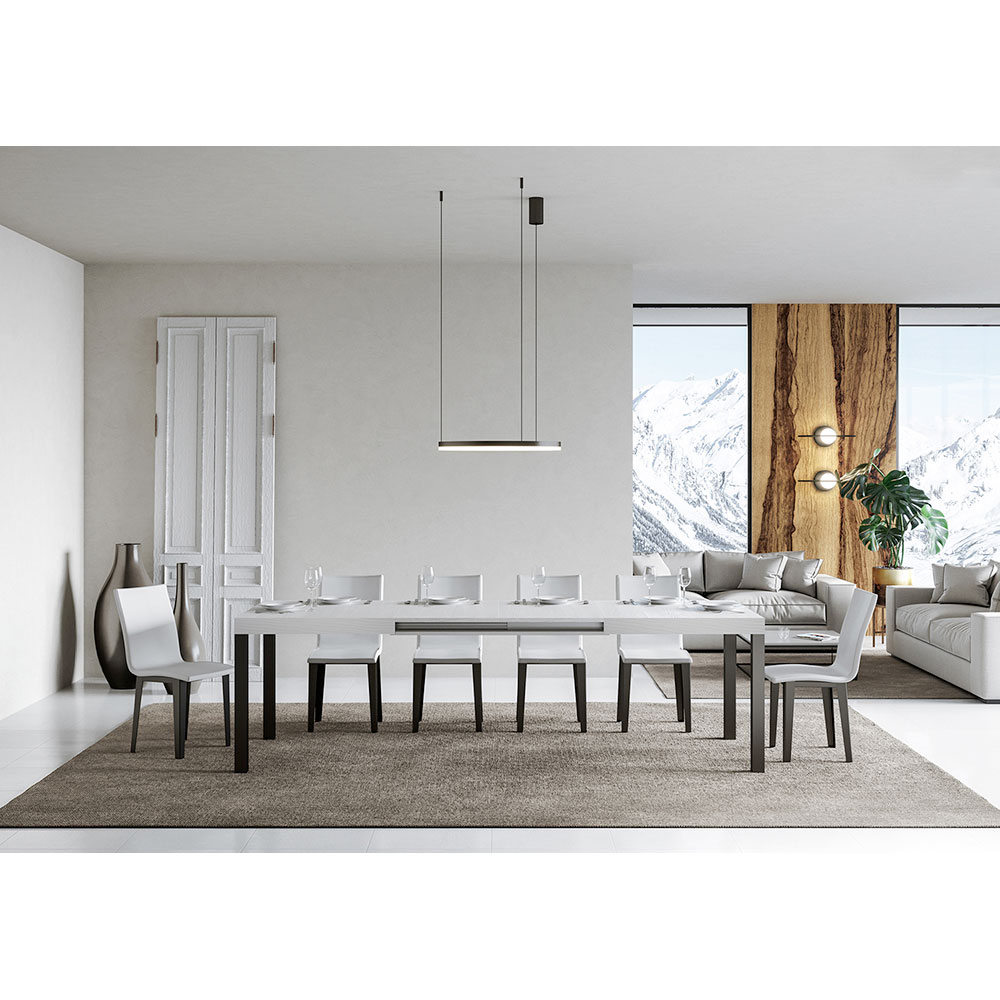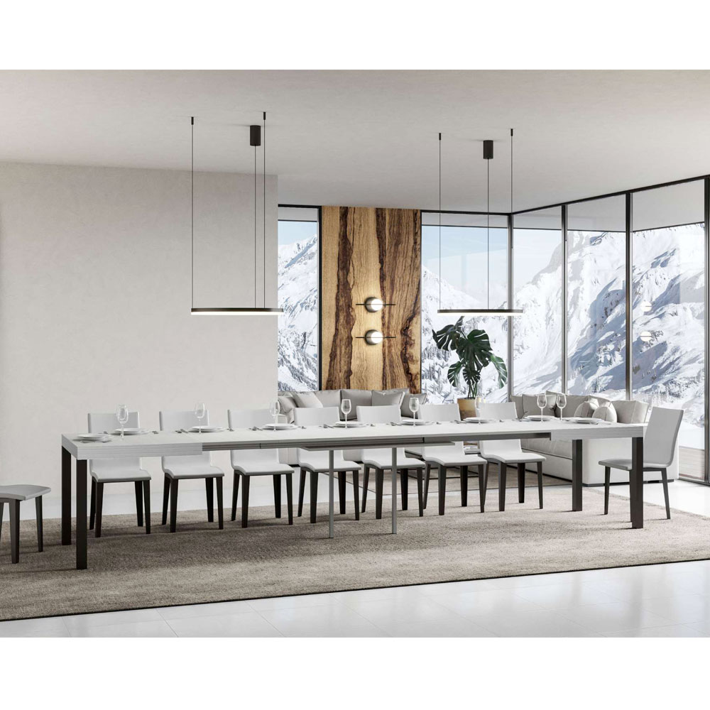 De echte magie van deze tafel ligt echter in zijn uitbreidbare veelzijdigheid. Ontworpen om zich dynamisch aan te passen aan de behoeften van het moderne leven, kan het gemakkelijk worden uitgebreid om extra gasten te ontvangen, waardoor het ideaal is voor entertainment of om groeiende gezinnen te huisvesten. De kwaliteitsafwerking en stevige constructie beloven duurzaamheid en kracht, waardoor deze tafel een langetermijninvestering voor thuis is.