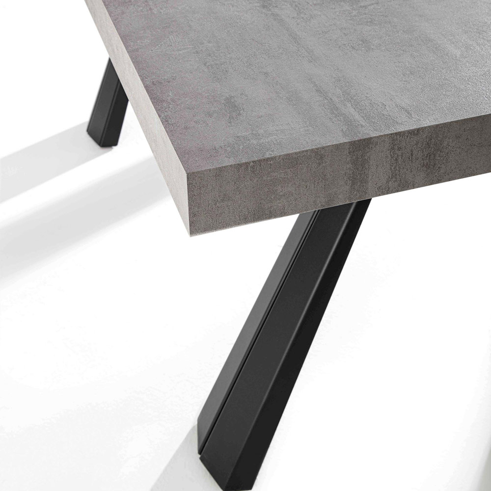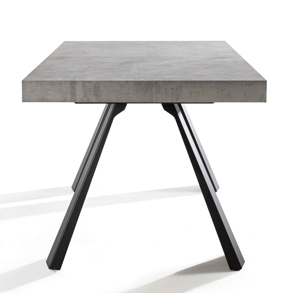 zwart gelakt metaal . Zijn eigenaardigheid wordt weergegeven door de mogelijkheid om het blad uit te breiden tot een maximale lengte van 410 of 500 cm dankzij de verlengingen in dezelfde kleur, waardoor het plaats biedt aan maximaal 18 personen, waardoor heerlijke lunches of diners in gezelschap worden gegarandeerd terwijl de kleinere afmetingen eenmaal behouden blijven gesloten. . De stijl die het ontwerp kenmerkt, is gebaseerd op