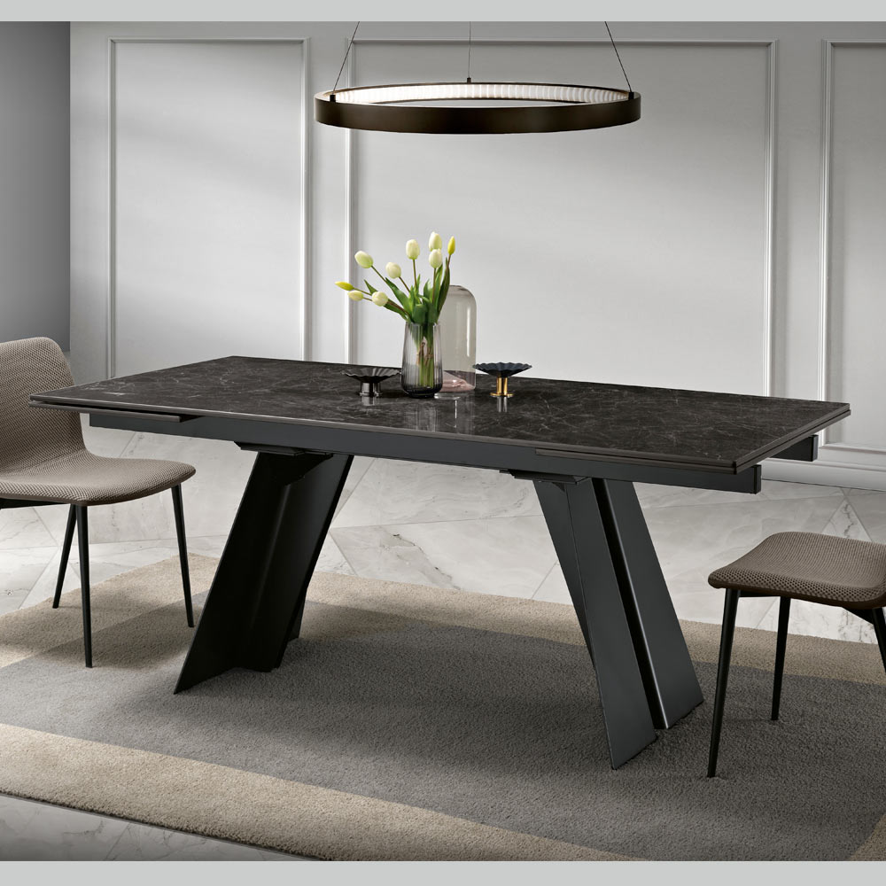 Ideaal voor wie op zoek is naar een evenwicht tussen elegantie en functionaliteit. Deze uitschuifbare tafel past zich gemakkelijk aan zowel intieme ruimtes als grotere eetkamers aan.