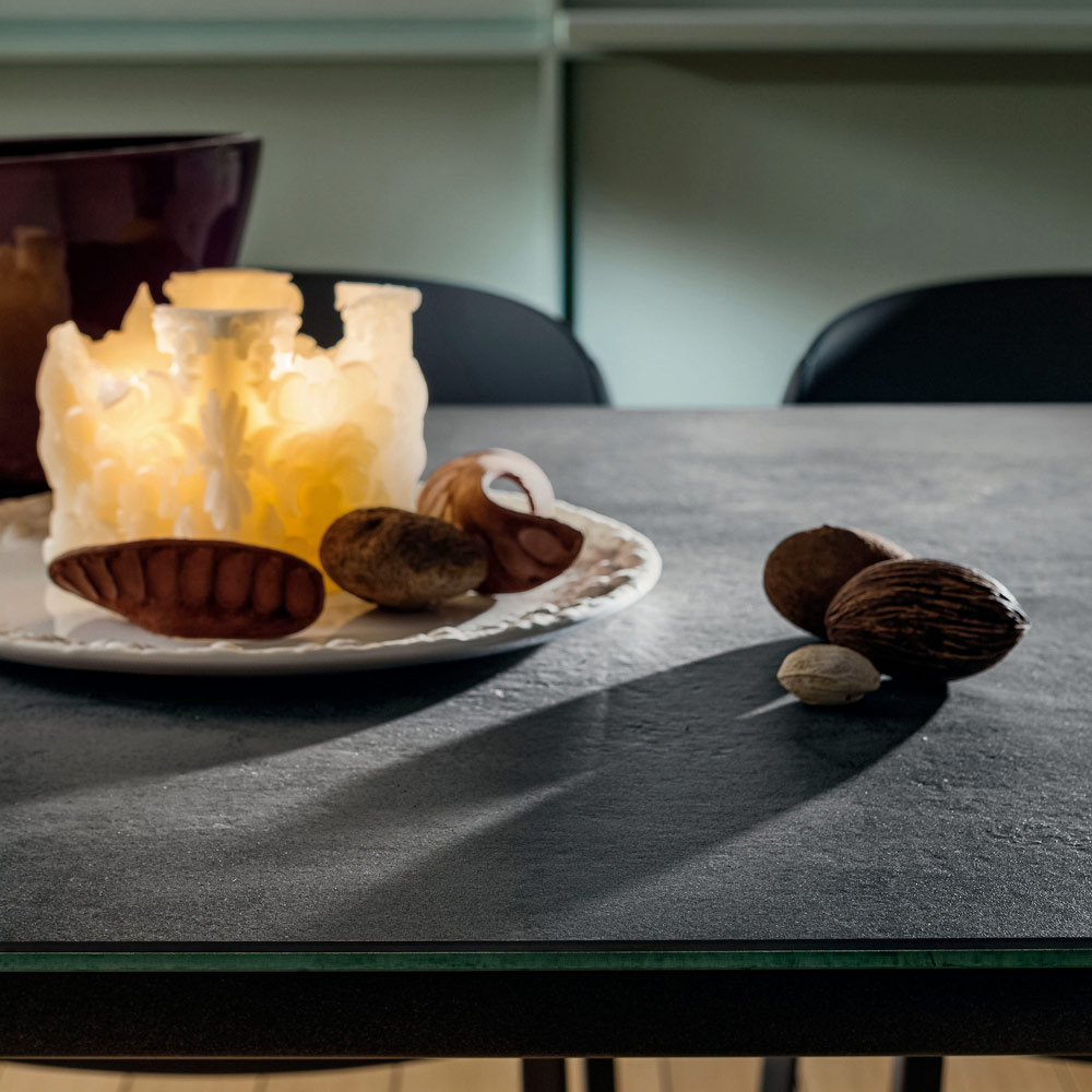 Eettafel met uitschuifbaar laminam blad gemaakt in Italië, hoge kwaliteit.