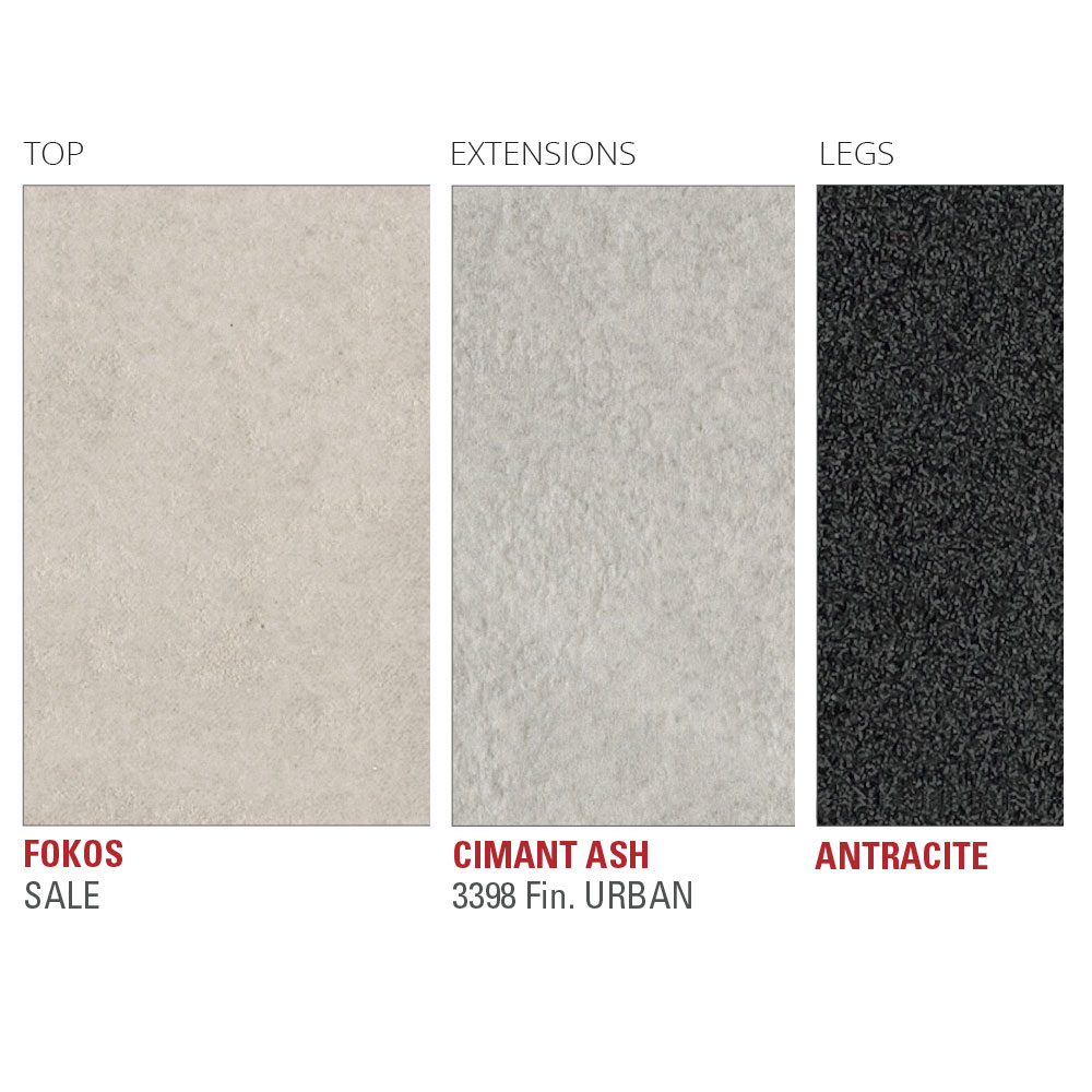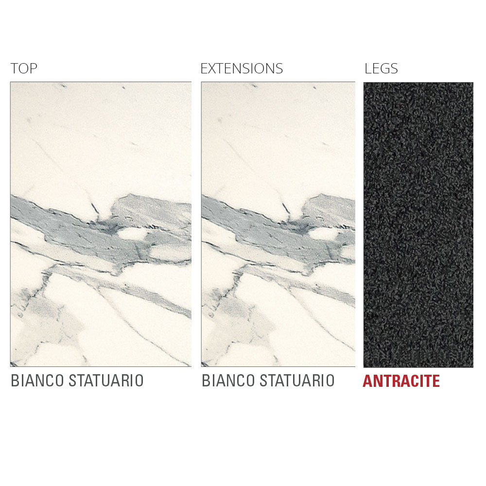NB : het tafelblad en onderstel zijn verkrijgbaar in een groot aantal verschillende afwerkingen. De continuïteit van de nerf tussen de bovenkant en de extensie is niet gegarandeerd