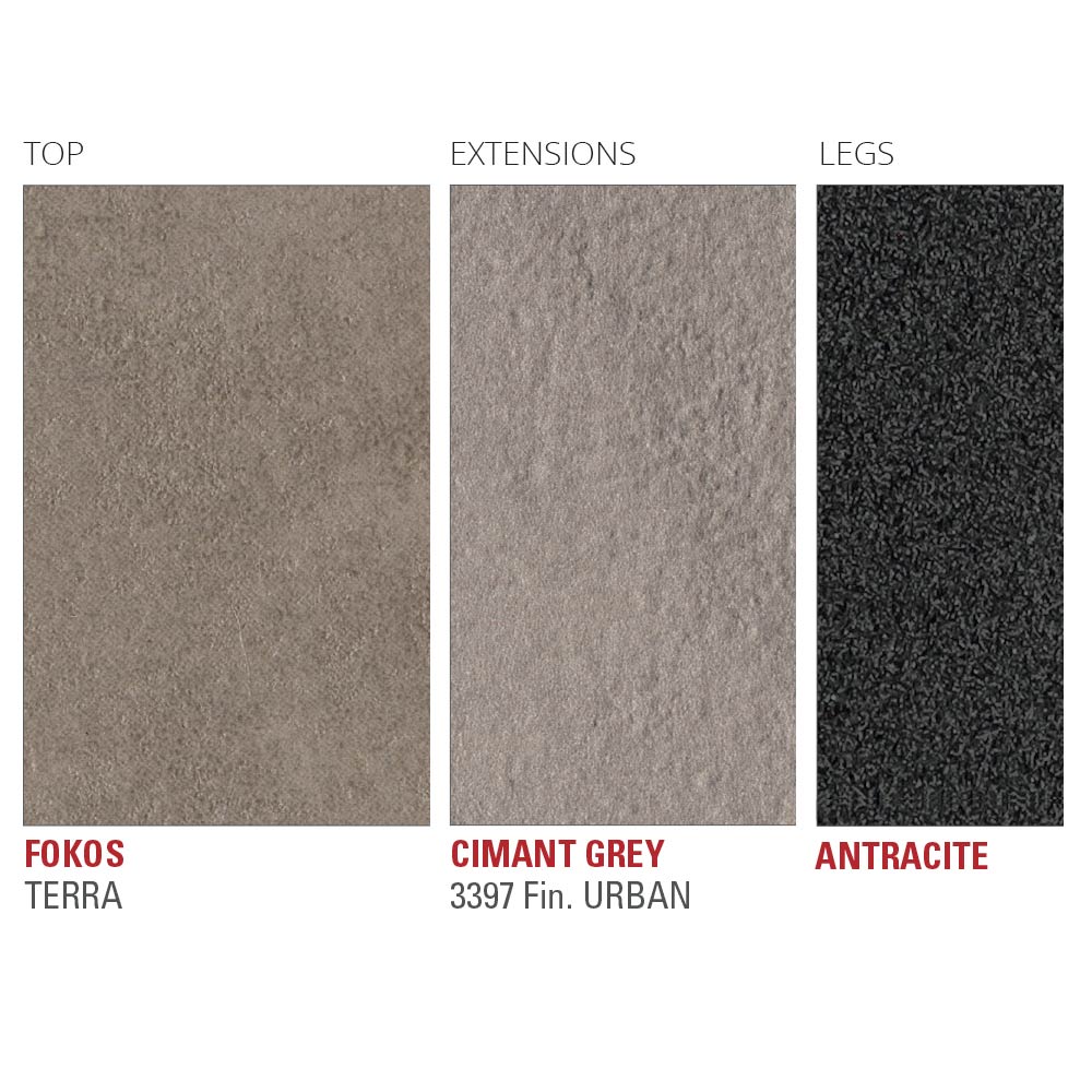 gelakt aluminium in antracietkleurige afwerking. Zijn eigenaardigheid wordt vertegenwoordigd door de laminam top, een