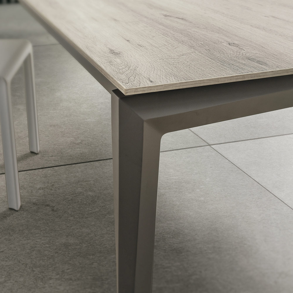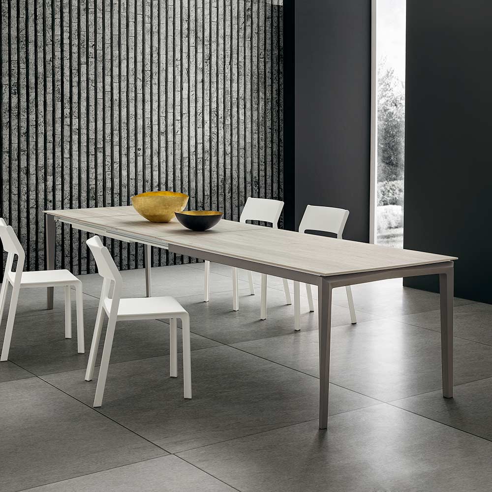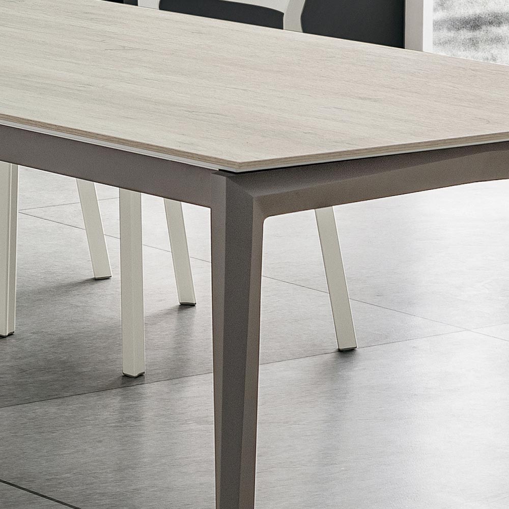 uitschuifbare blad dat een lengte van 240 cm kan bereiken, waardoor het het perfecte idee is voor diegenen die graag lunches en diners met vrienden organiseren en een oplossing nodig hebben die zowel functioneel als modern is en een prachtige harmonie met de omgeving kan creëren. meubilair. De prachtige esthetiek wordt onderstreept door het HPL-blad, een
