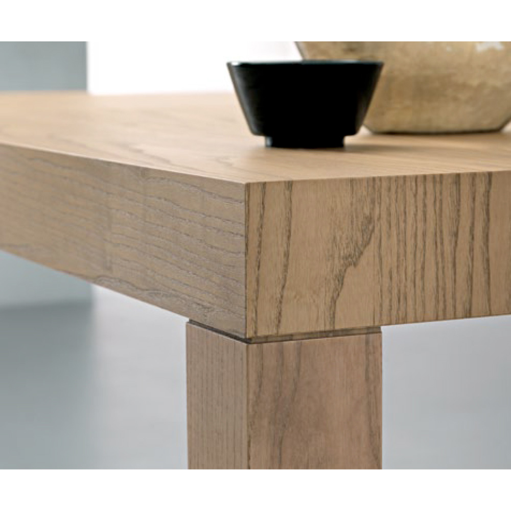 De poten van de tafel, met hun eenvoudige maar gedurfde profiel, zorgen voor stabiliteit en een eigentijdse uitstraling, terwijl het lichte hout naadloos past in elke omgeving, zowel modern als meer traditioneel. De schoonheid van het ruwe hout, gecombineerd met de hoogwaardige constructie, maakt de tafel een ideale keuze voor wie op zoek is naar een duurzaam meubelstuk dat een vleugje klasse toevoegt aan de ruimte.