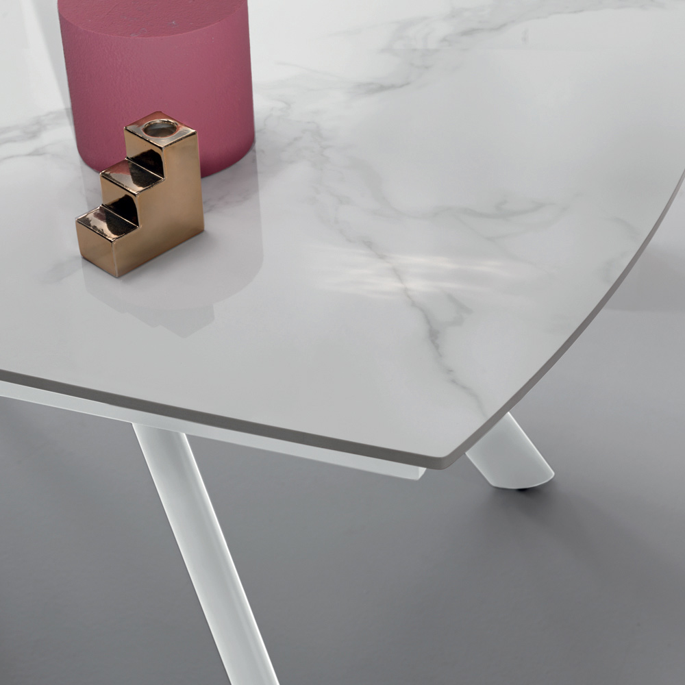 De strakke lijnen en hoogwaardige materialen maken deze tafel een perfecte oplossing voor moderne interieurs, en voegen elegantie en functionaliteit toe aan de eetruimte.