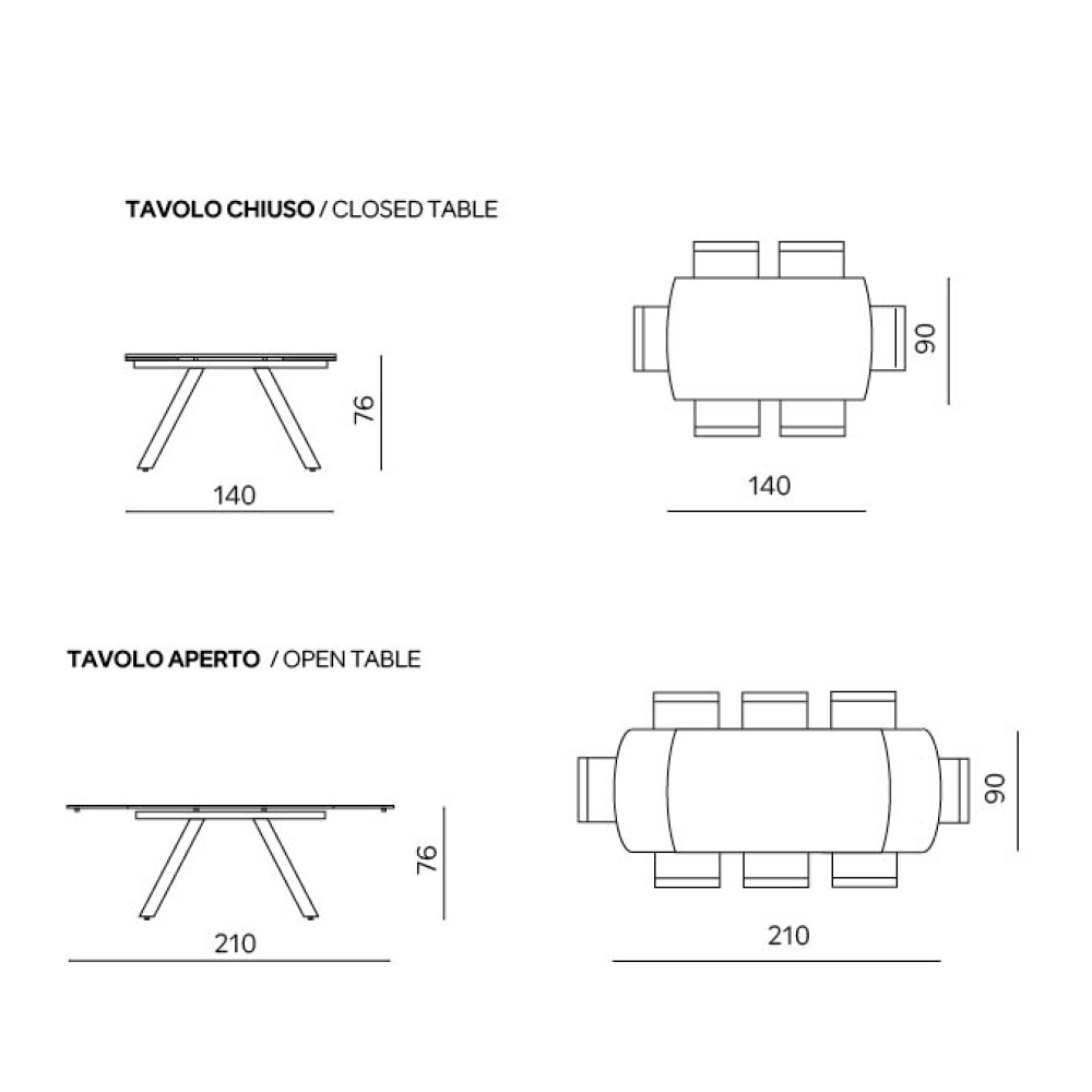 De tafel is voorzien van twee zijverlengstukken van 35 cm waarmee u het tafelblad eenvoudig kunt vergroten van 140 cm tot 210 cm . Deze functie maakt de tafel ideaal voor zowel dagelijks gebruik als voor het ontvangen van grotere gasten tijdens gezellige lunches en diners, en past zich gemakkelijk aan verschillende ruimtes aan.