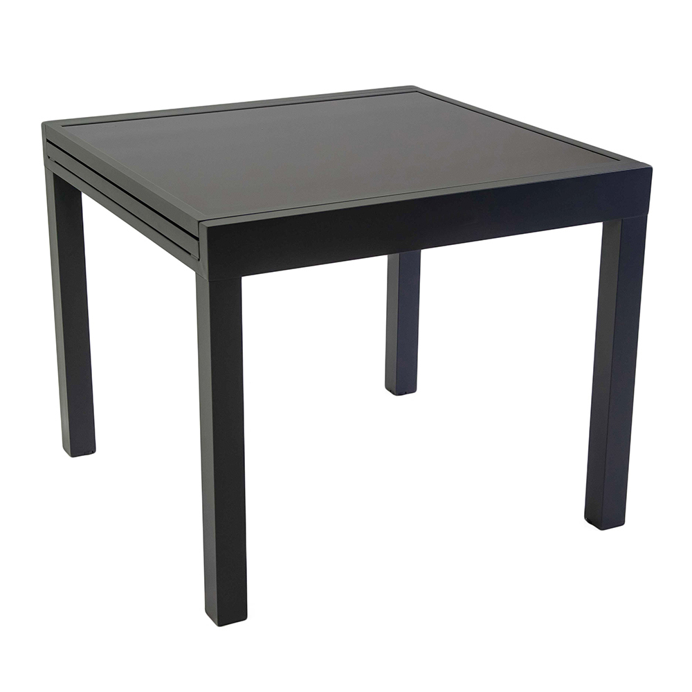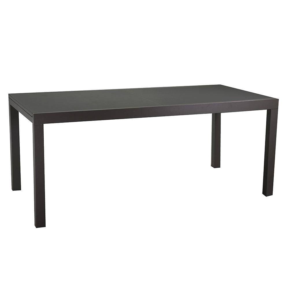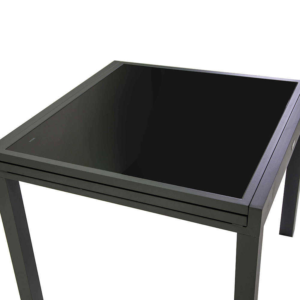 Het blad van glas voegt niet alleen een vleugje elegantie toe, maar is ook gemakkelijk schoon te maken, ideaal voor wie op zoek is naar een praktische oplossing zonder afbreuk te doen aan het design. Het aluminium frame zorgt voor duurzaamheid en weerstand tegen de elementen, waardoor deze tafel een duurzame keuze is om te genieten van gezellige momenten buiten of elegante diners binnen.