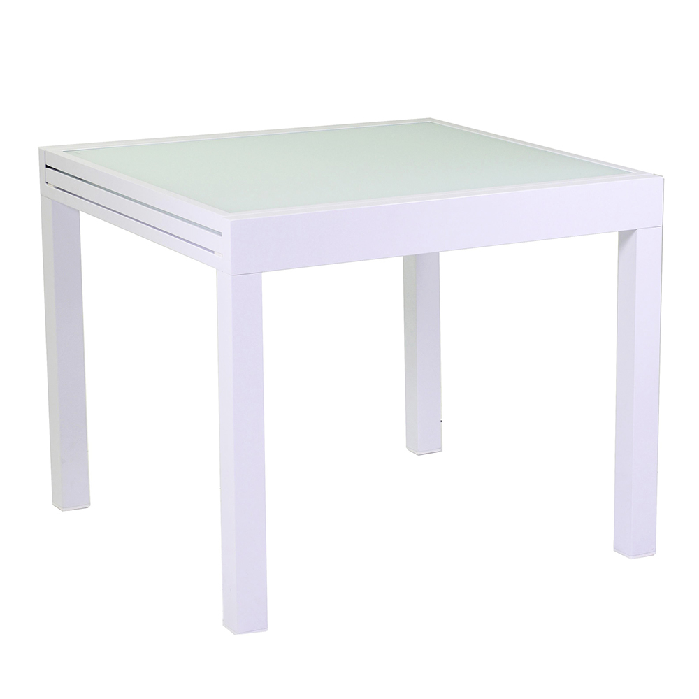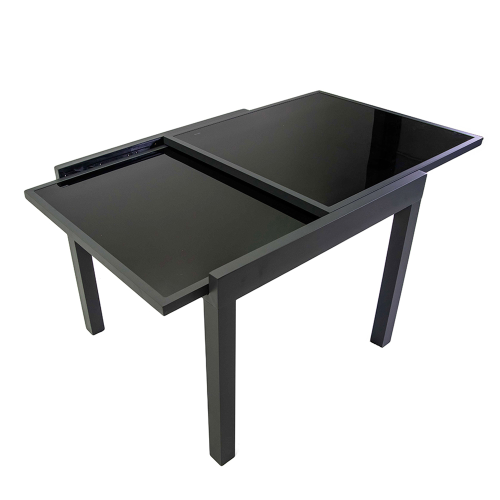 Deze uitschuifbare aluminium tafel met gehard glazen blad is ideaal voor wie op zoek is naar functionaliteit en stijl in één product. Deze elegante en moderne tafel valt op door zijn afwerking die zich perfect aanpast aan zowel binnen- als buitenomgevingen.
