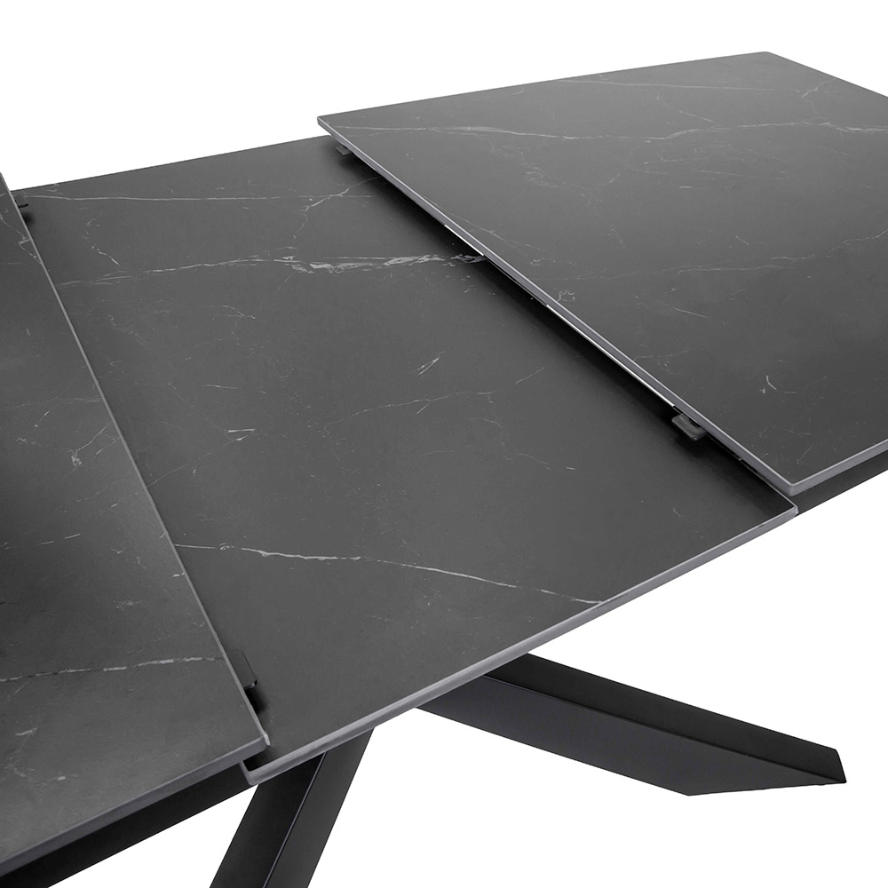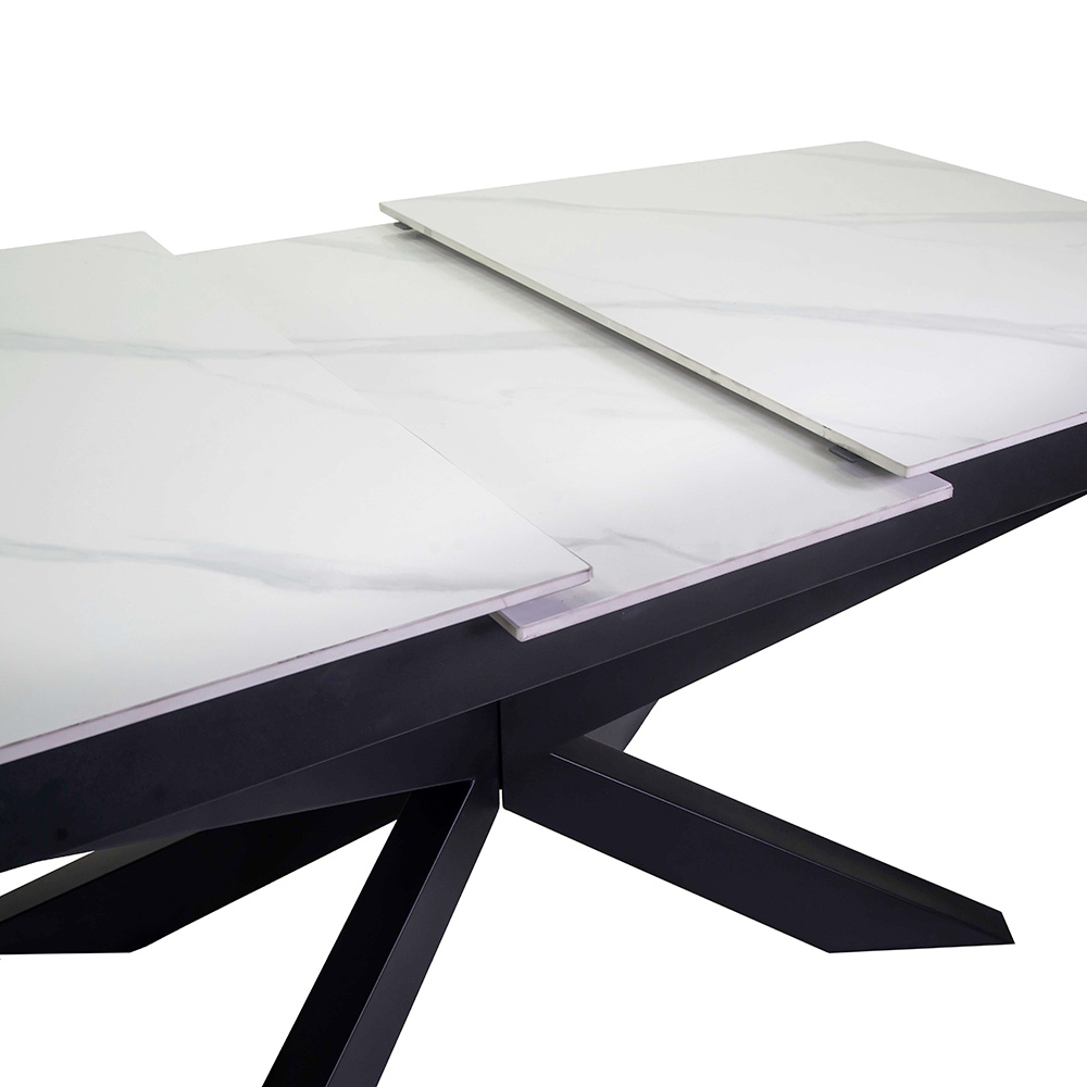 Ontdek tijdloze elegantie en eigentijds design met deze eettafel . De structuur wordt gekenmerkt door metalen poten met poedercoating , een detail dat stevigheid en een minimale en industriële uitstraling geeft. Het gesinterde stenen blad geeft de tafel een bestendig en verfijnd oppervlak, ideaal voor wie op zoek is naar een perfecte balans tussen functionaliteit en esthetiek .