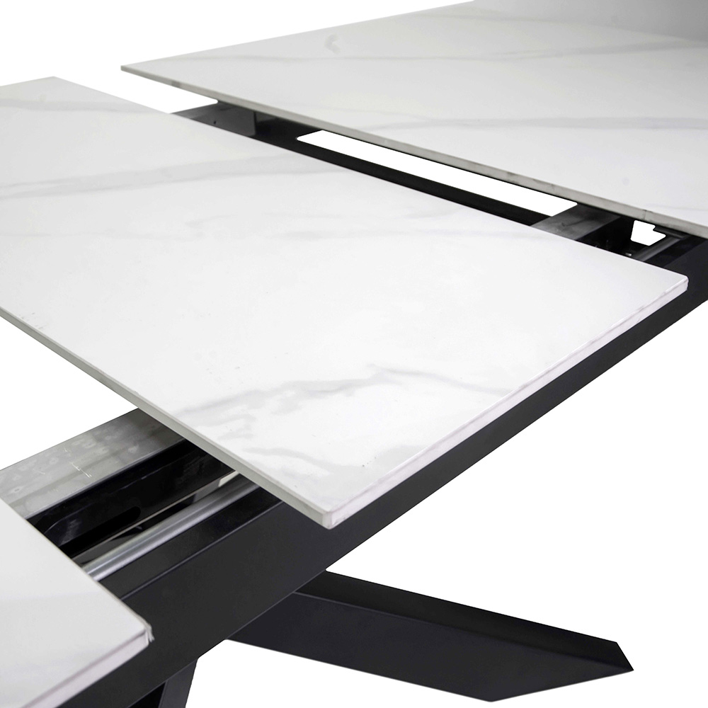 Gesinterde steen zorgt niet alleen voor duurzaamheid en schoonmaakgemak , maar voegt ook een vleugje moderne luxe toe dankzij de natuurlijke nerf en elegante afwerkingen. Deze tafel past perfect in elke omgeving: van de woonkamer tot de eetkamer, tot contractuele ruimtes.